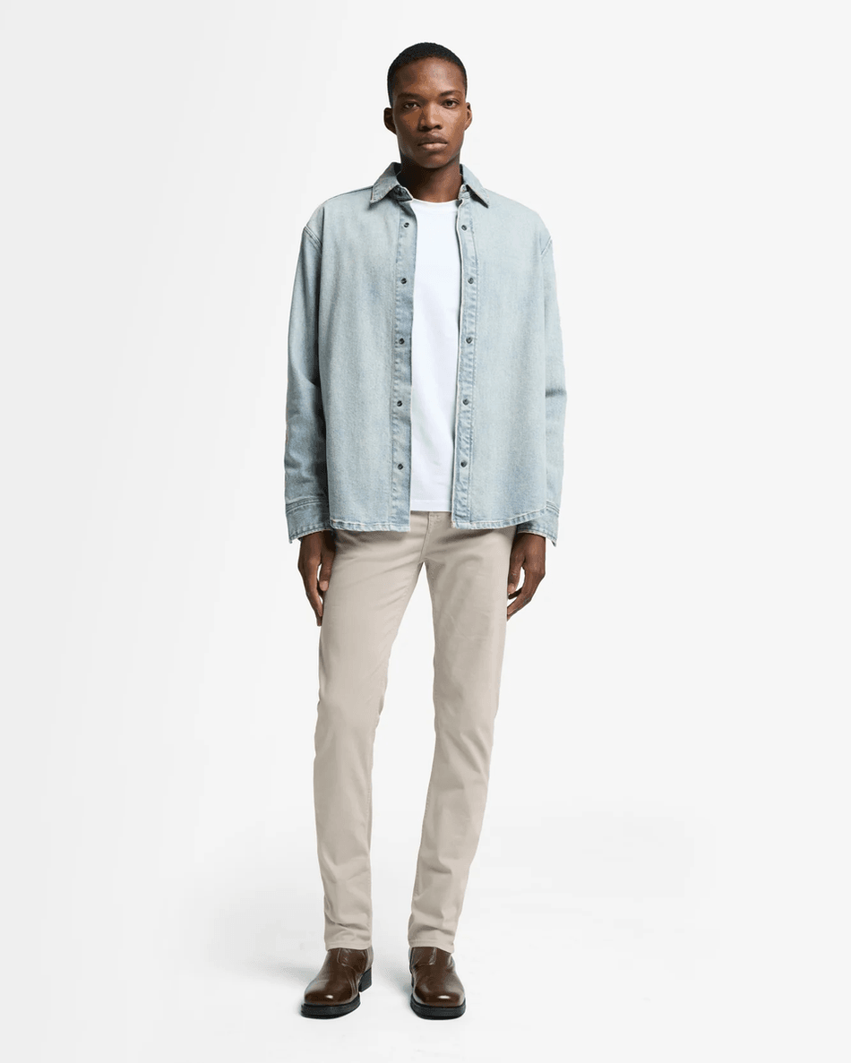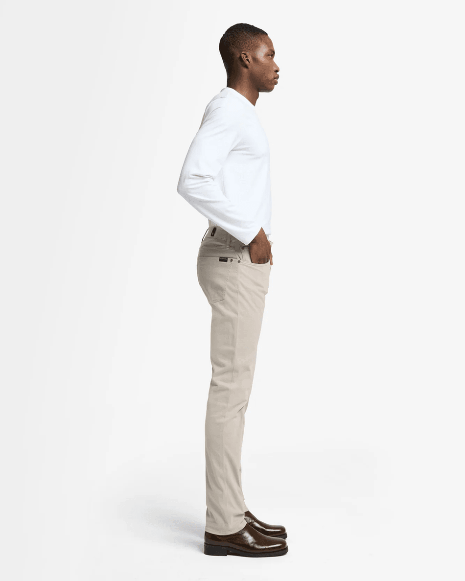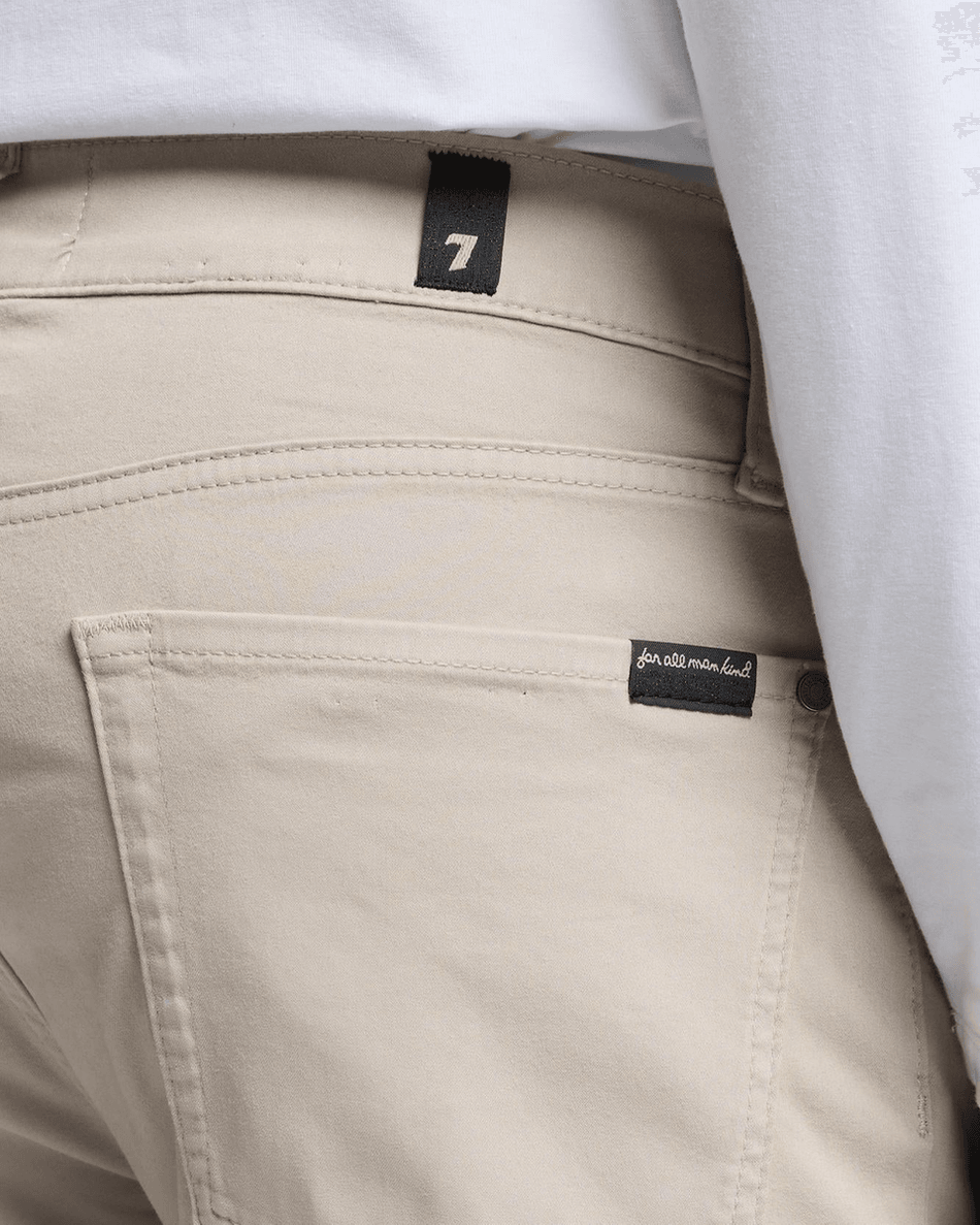 Discover the perfect blend of comfort and style with the 7 For All Mankind Luxe Performance Slimmy in Blade Blade. These slim-fit jeans feature a light khaki wash that effortlessly elevates your wardrobe, providing a sleek silhouette that flatters without feeling restrictive.