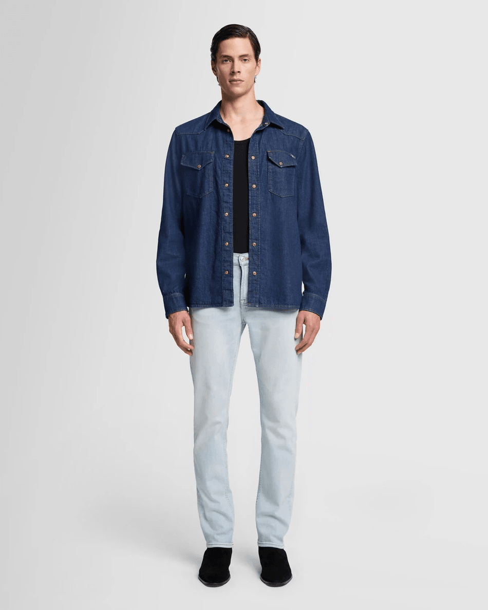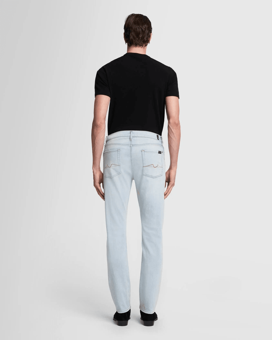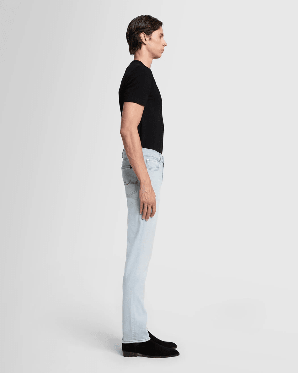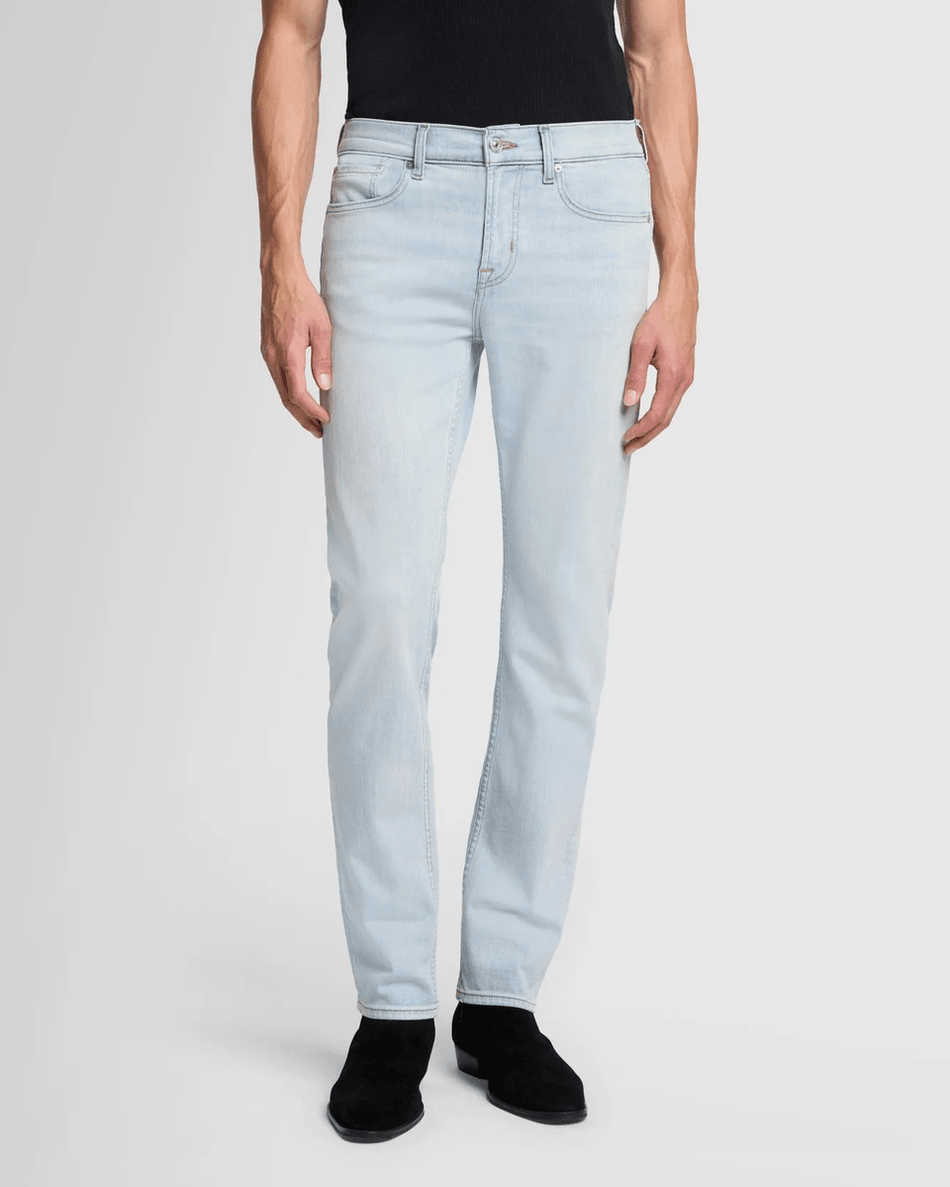 Experience unparalleled style and comfort with the 7 For All Mankind Luxe Performance Slimmy in Mezzo Mezzo. This classic slim fit jean is expertly designed for a streamlined silhouette that flatters without being too tight. Embrace a modern look that effortlessly transitions from casual to polished.