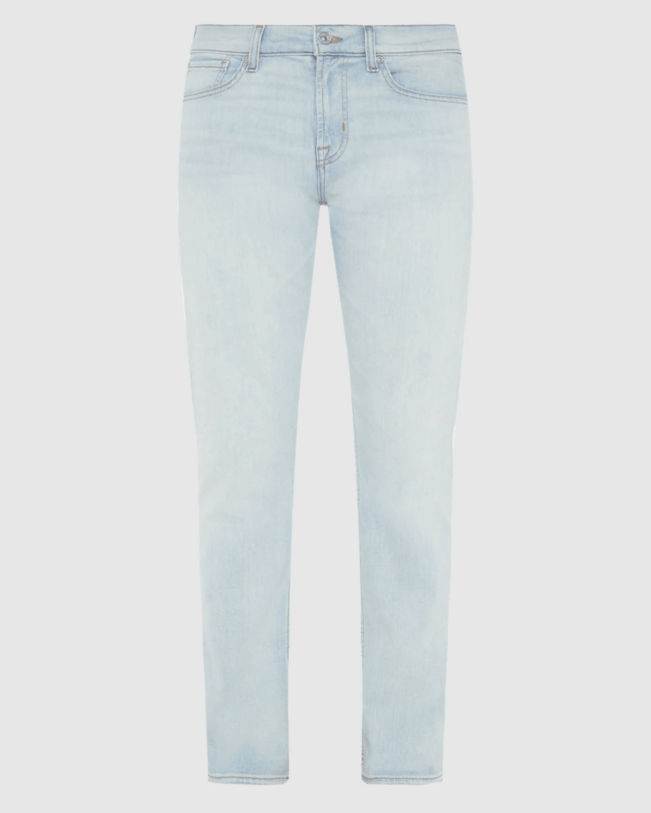 The 7 For All Mankind Luxe Performance Slimmy in Mezzo Mezzo is the ideal choice for those who value both style and comfort. The light blue wash adds a fresh vibe to your wardrobe, making it perfect for any occasion, from casual outings to stylish gatherings. With a zip closure for easy wear, these jeans promise a fit that moves with you throughout the day.