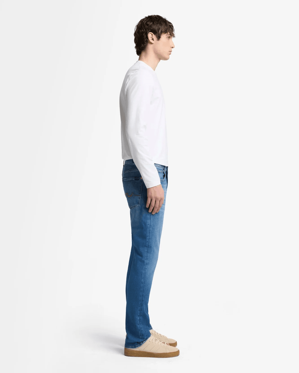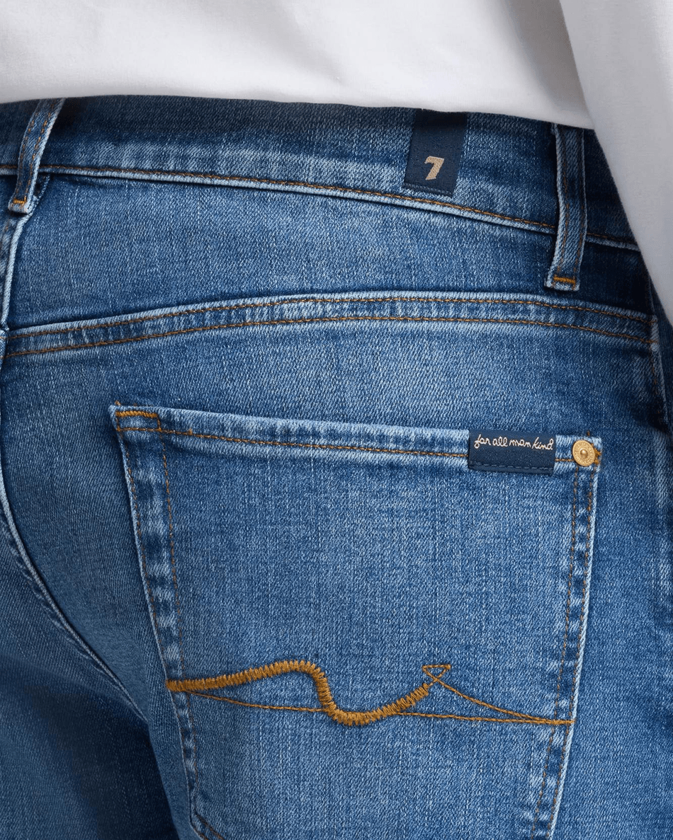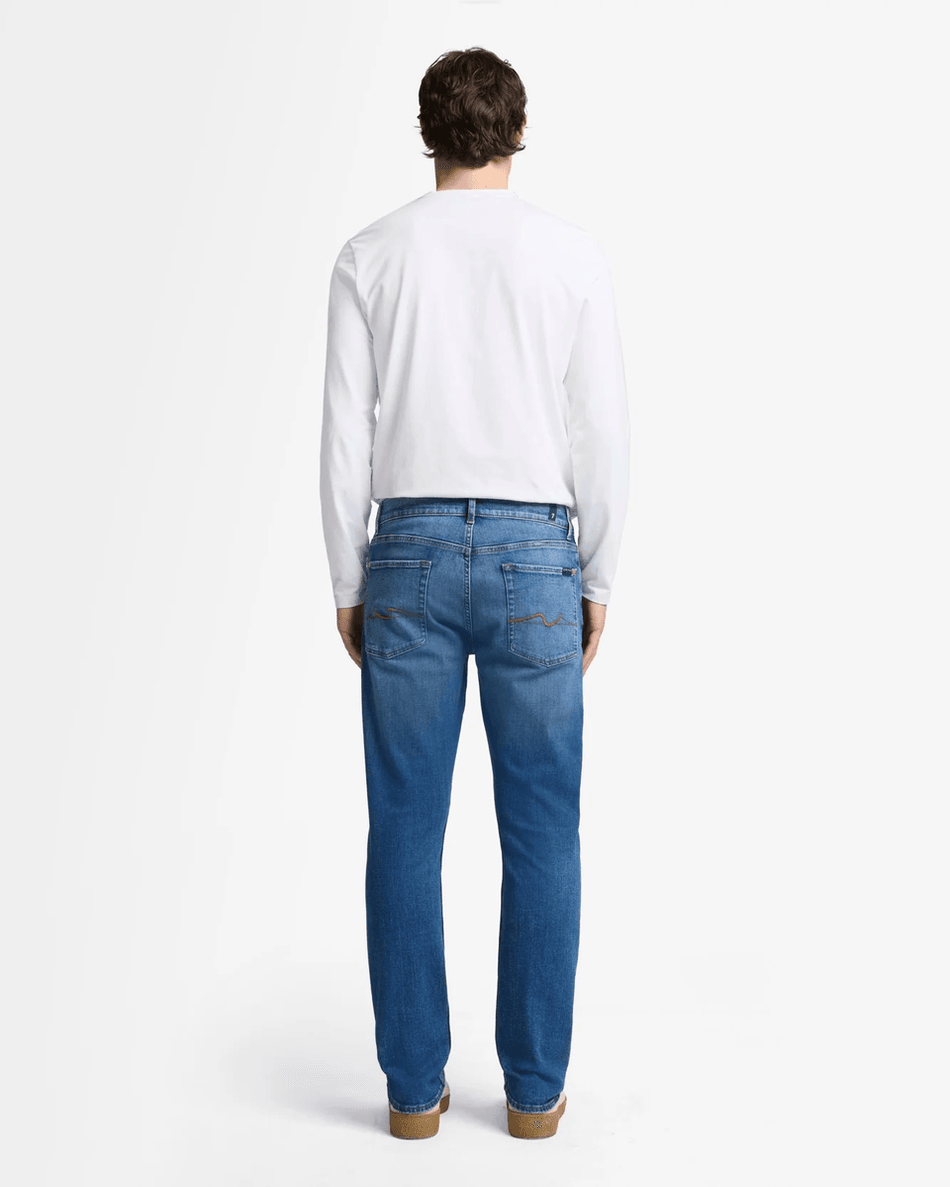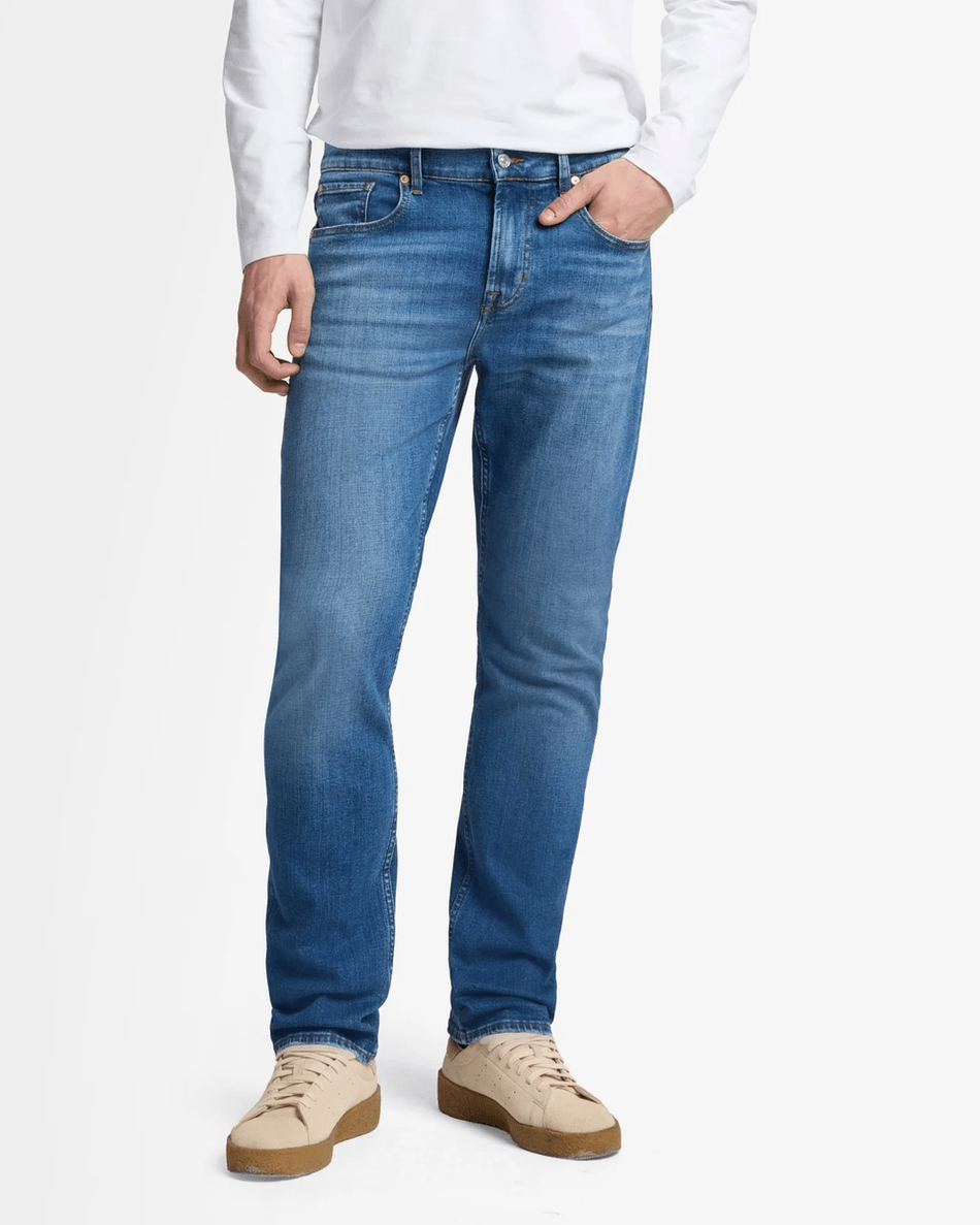 Featuring a sleek zip closure and a timeless medium indigo wash, these jeans are versatile enough to dress up or down. Whether you're pairing them with a t-shirt or a blazer, the 7 For All Mankind Luxe Performance The Straight ensures you look effortlessly chic.