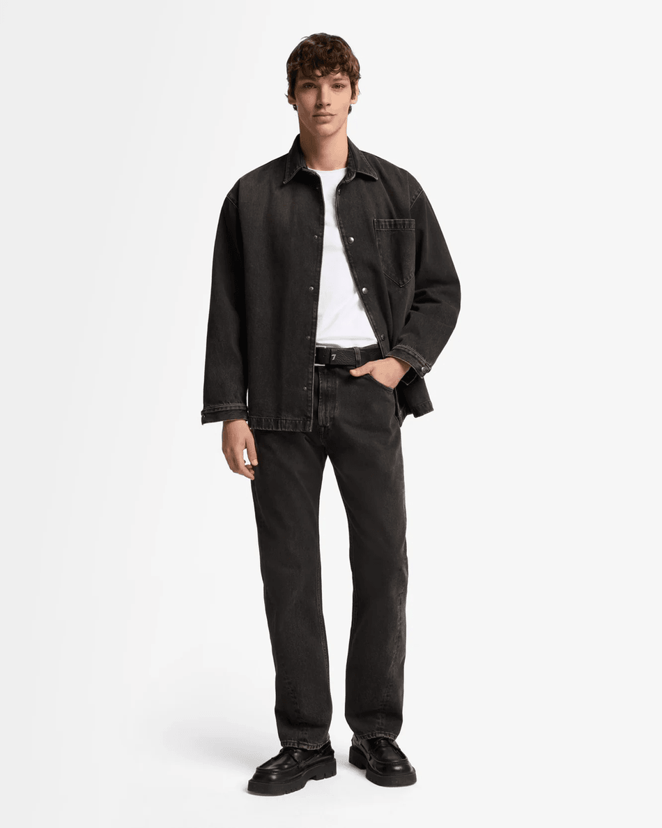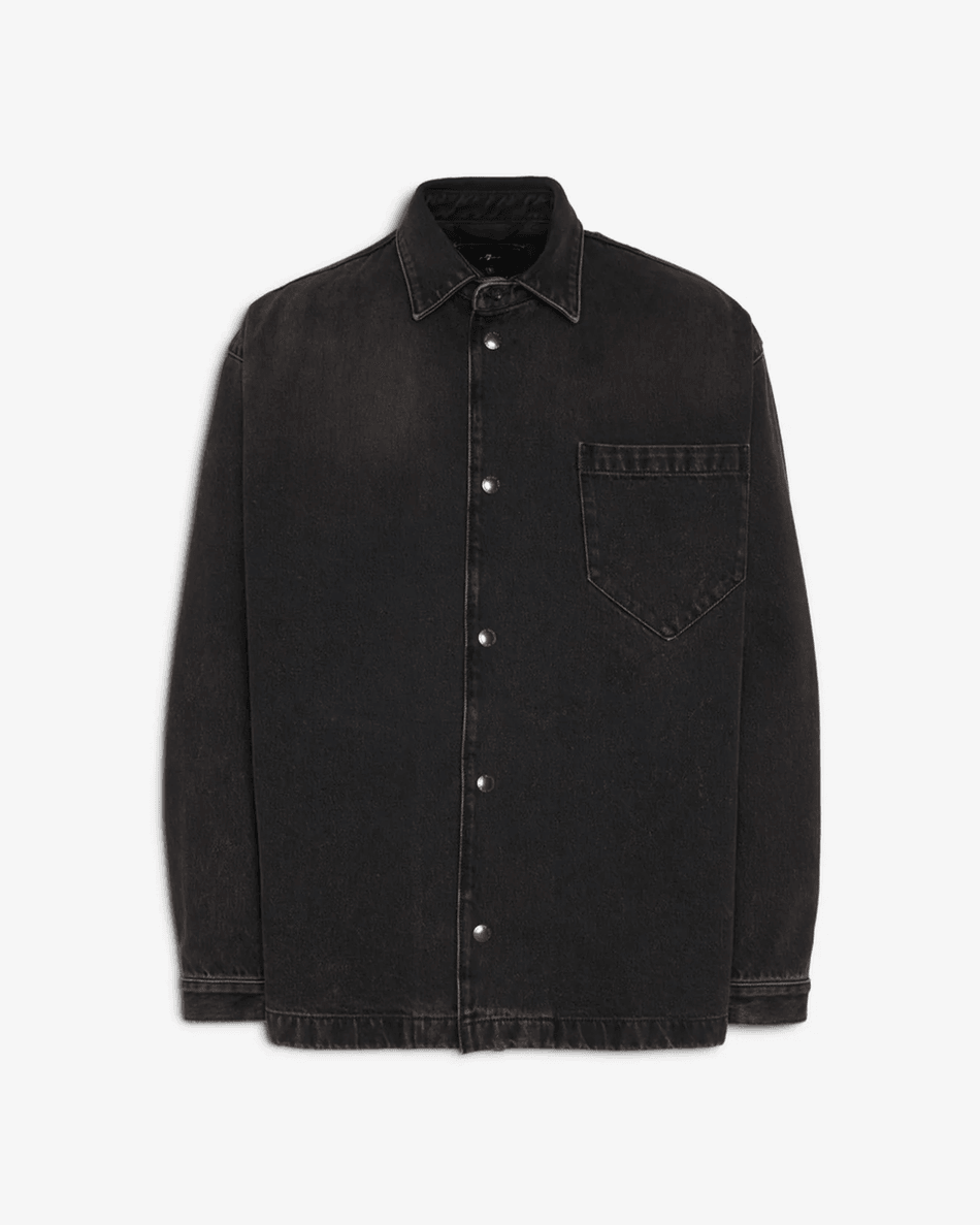 The 7 For All Mankind MANKIND Overshirt In Roots Roots is crafted from high-quality denim, ensuring longevity and style. The boxy silhouette allows for versatility, making it a perfect layering piece for various occasions, from casual outings to more polished looks.