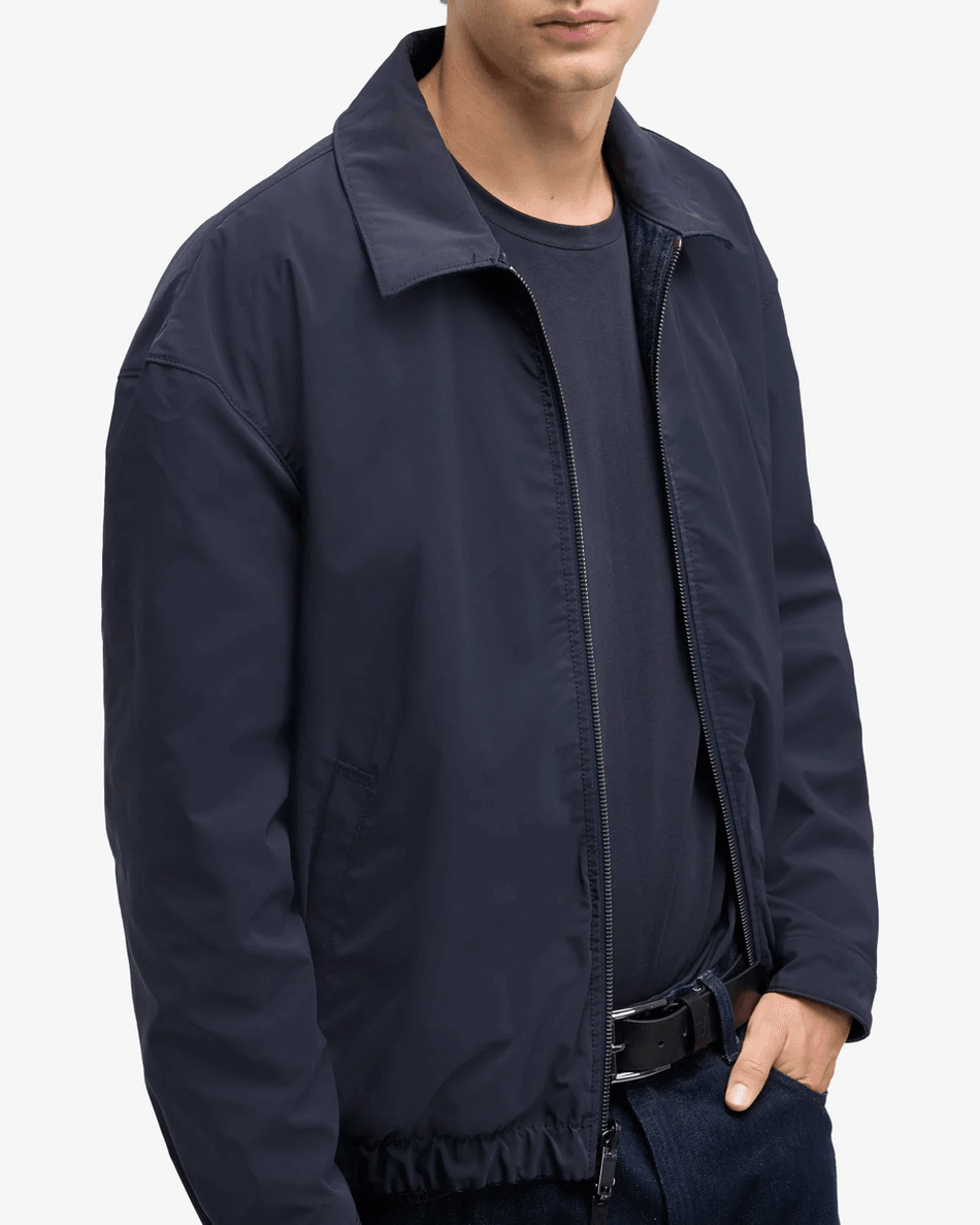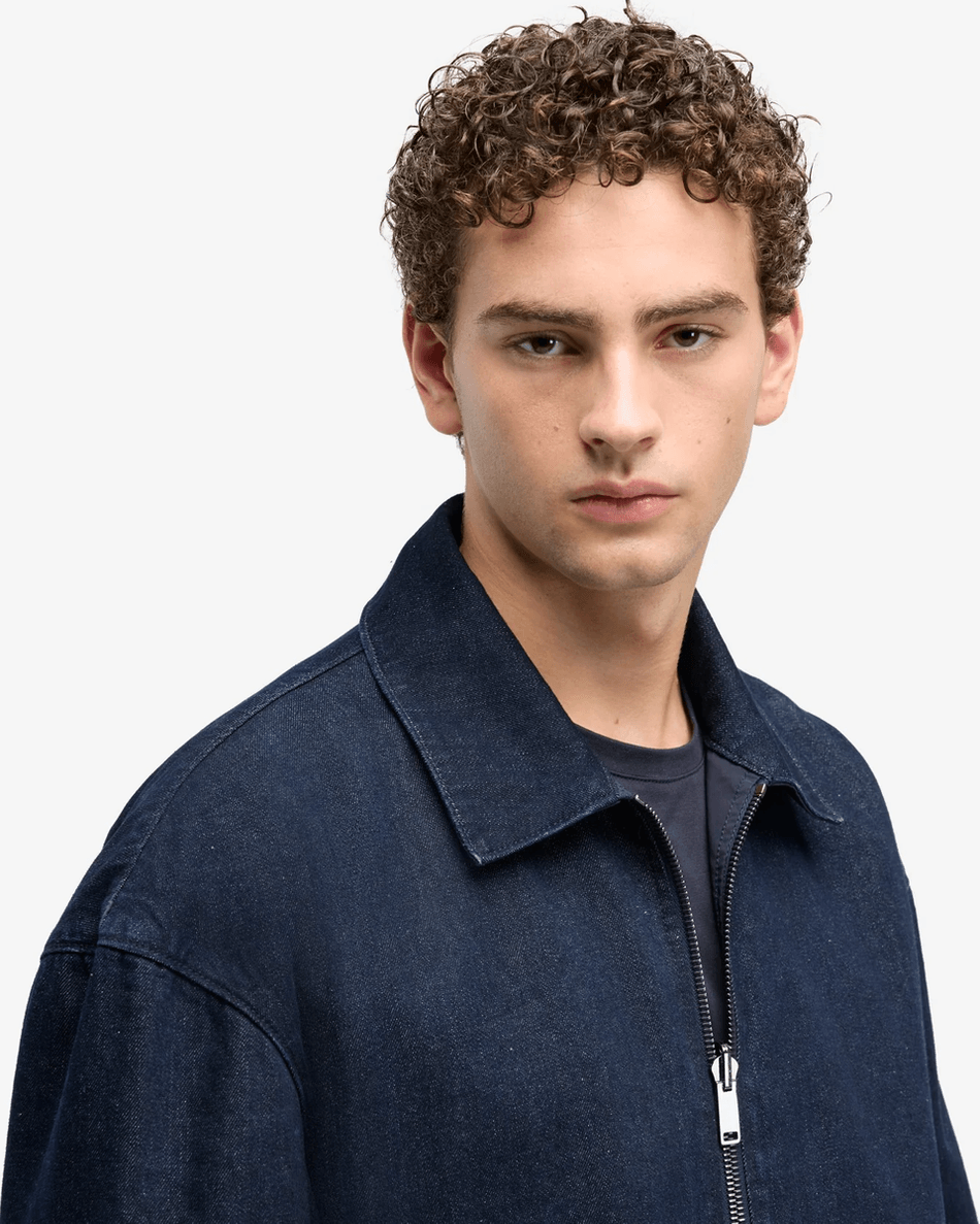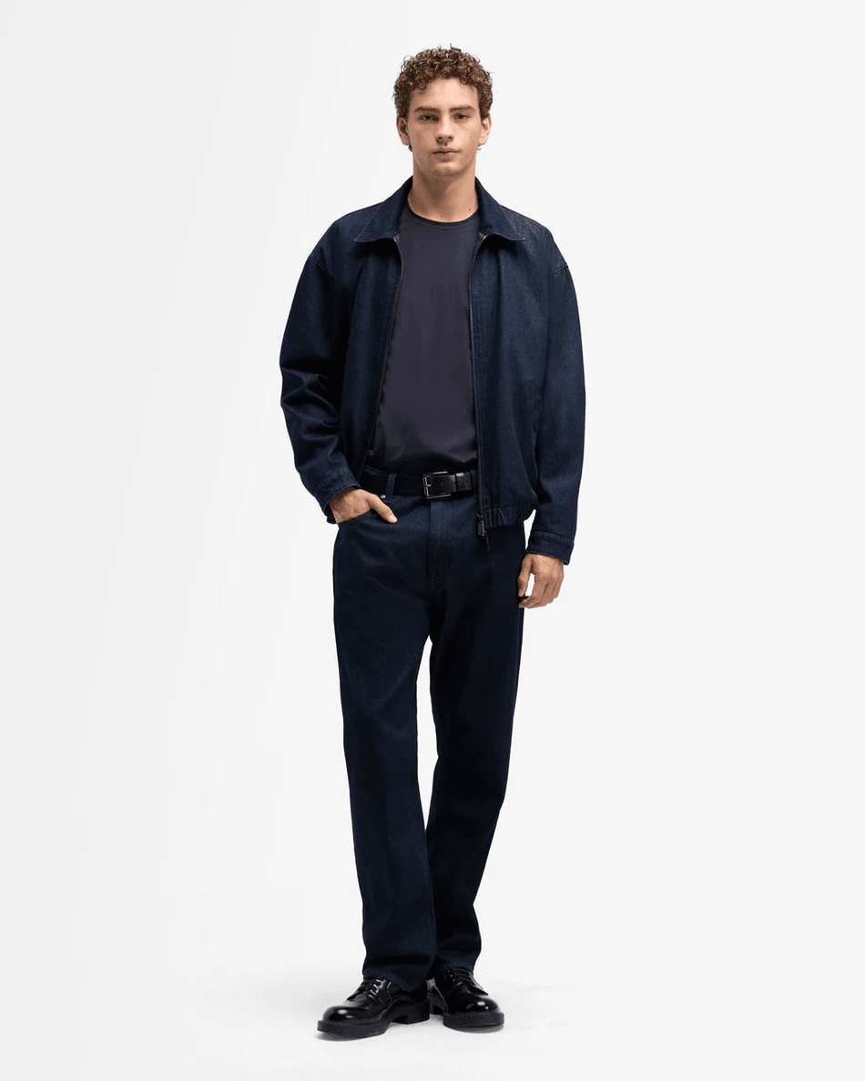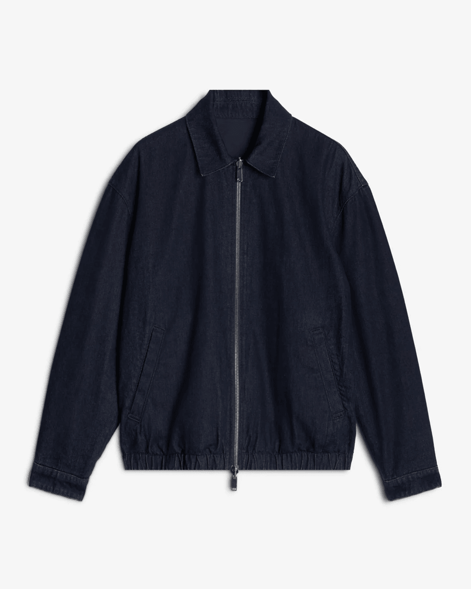 The 7 For All Mankind MANKIND Reversible Bomber Jacket combines style and functionality. One side showcases a chic raw denim look, while the other boasts a sleek matte black finish. This jacket fits like a dream—relaxed through the body with an elasticated hem that ensures a snug fit without sacrificing comfort.