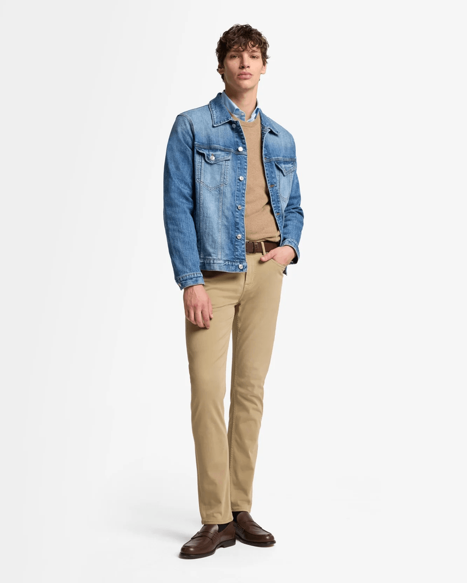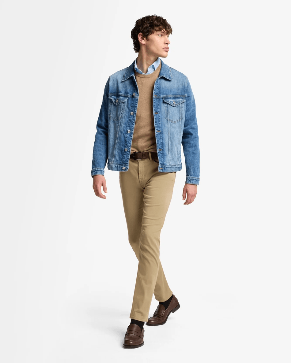 - Unique Tactile Character: Features medium structure and built-in comfort stretch.