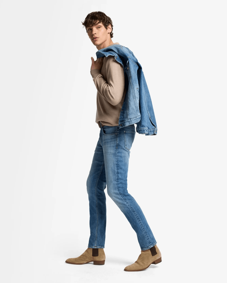 The 7 For All Mankind Multicount Slimmy Tapered jeans boast a shorter inseam for a sleek profile, ensuring you don’t sacrifice comfort for style. Crafted from classic denim with a unique tactile character, these jeans feature a medium structure that provides durability without compromising on feel. Subtle whiskering and sanding along the thighs add a touch of modern flair, making them perfect for any casual or semi-formal occasion.
