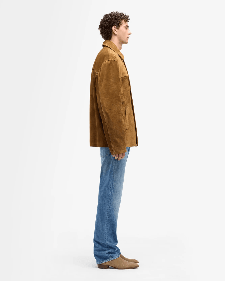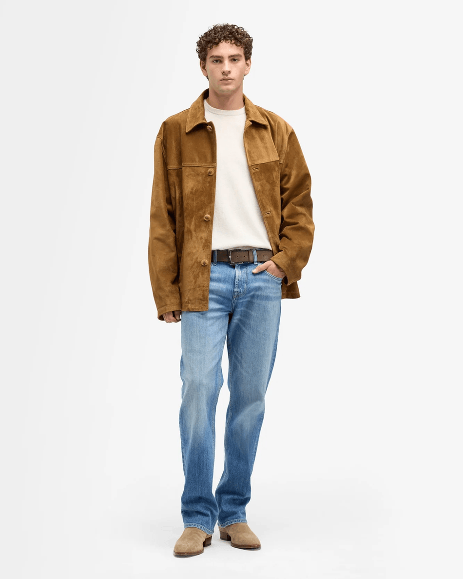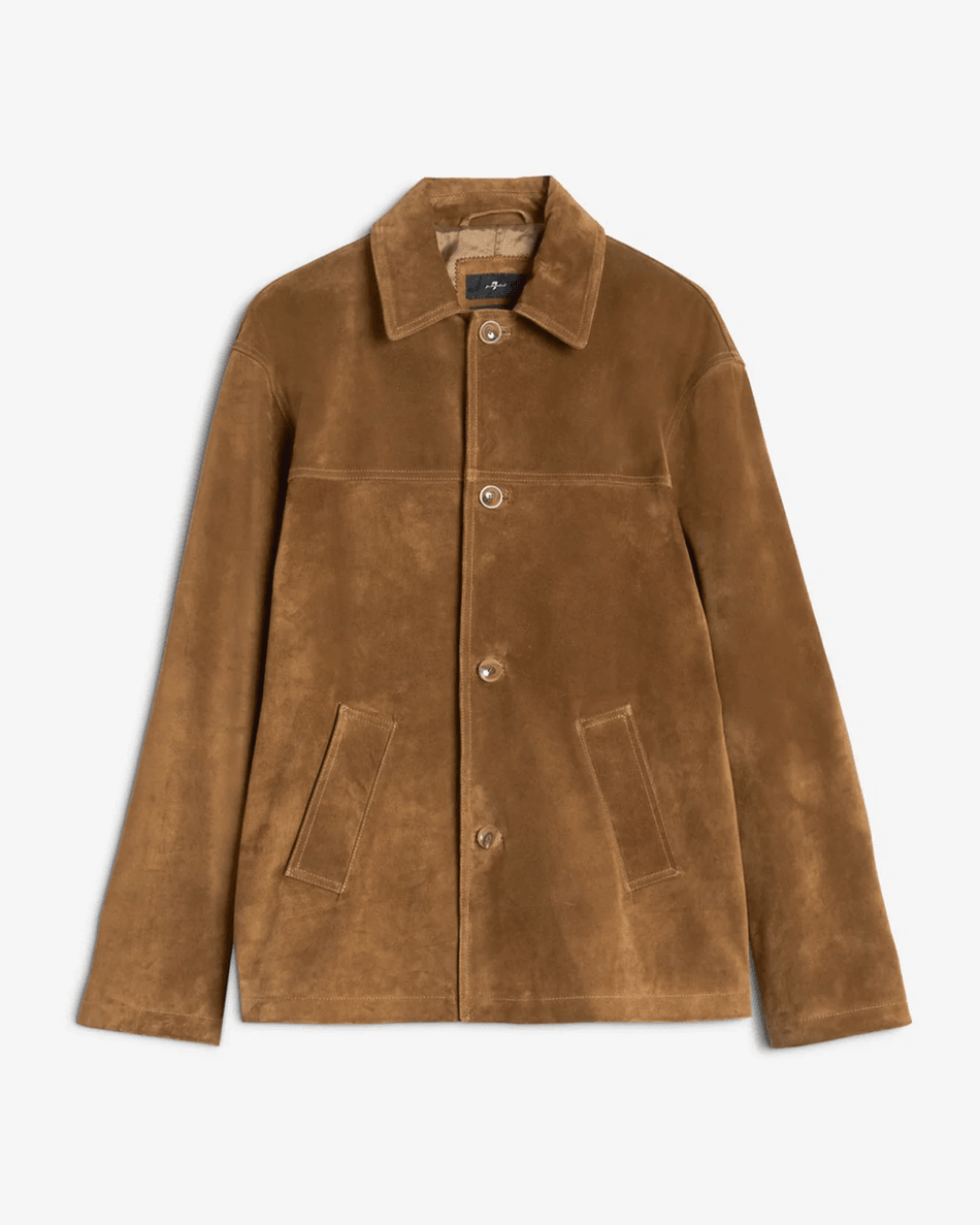 Discover the 7 For All Mankind Suede Long Jacket In Tobacco