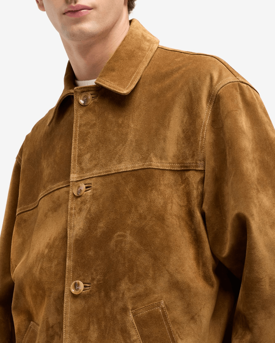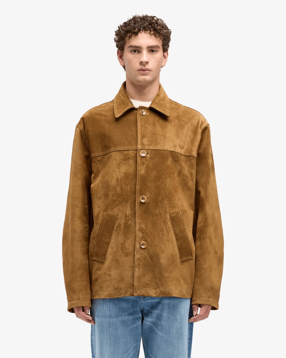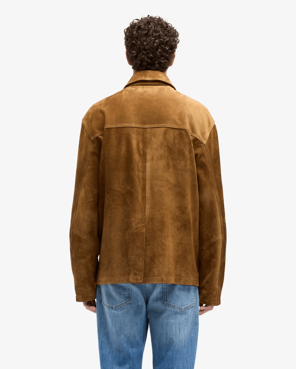 Discover the 7 For All Mankind Suede Long Jacket In Tobacco