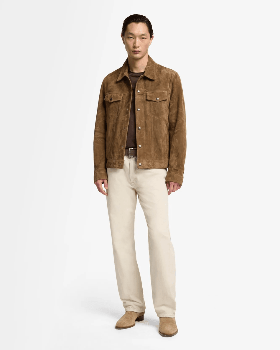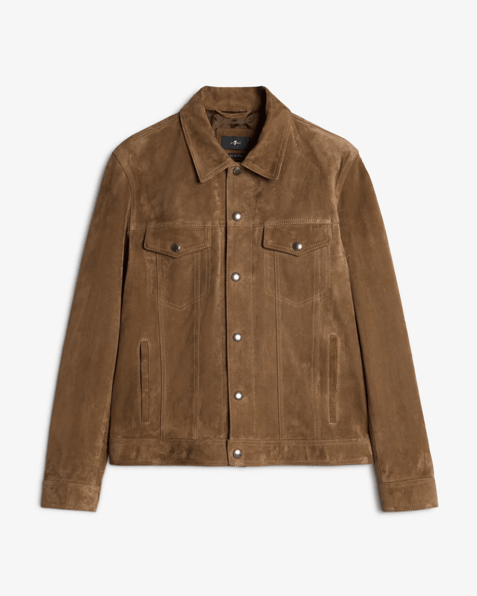 Discover the 7 For All Mankind Suede Trucker Jacket in Chestnut