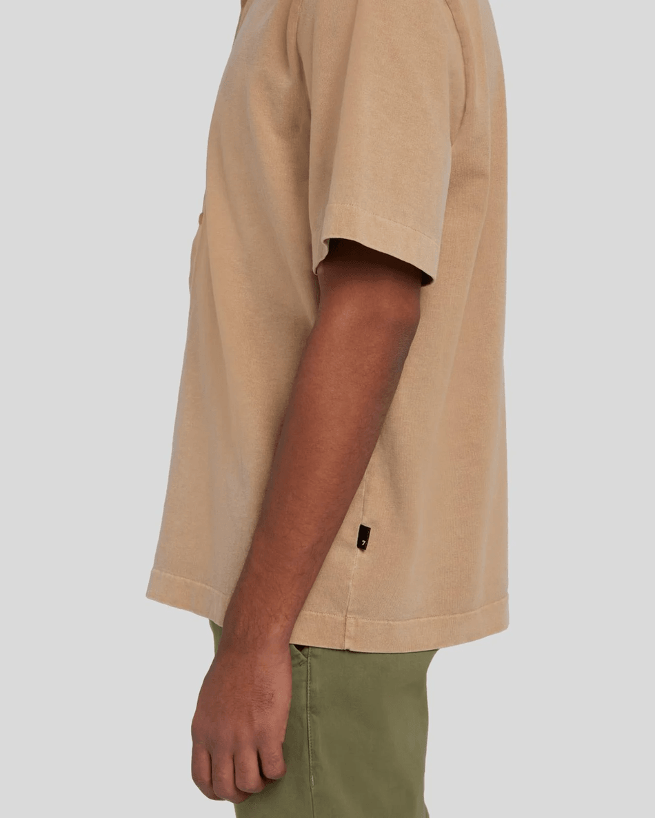 7 For All Mankind Button Down Mineral Dye Polo in Sand Sand