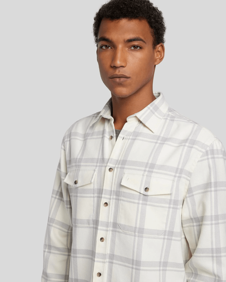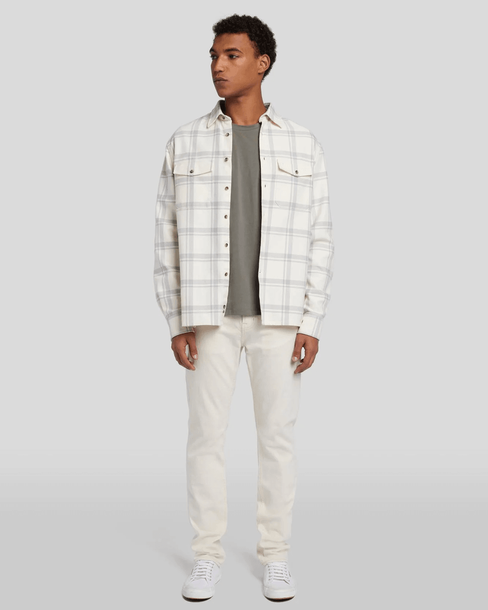 7 For All Mankind Checkered Overshirt in Off White Off White