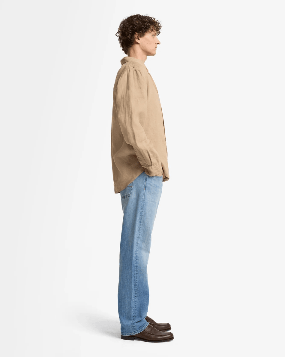 7 For All Mankind Classic Linen Button Up Shirt in Taupe Taupe