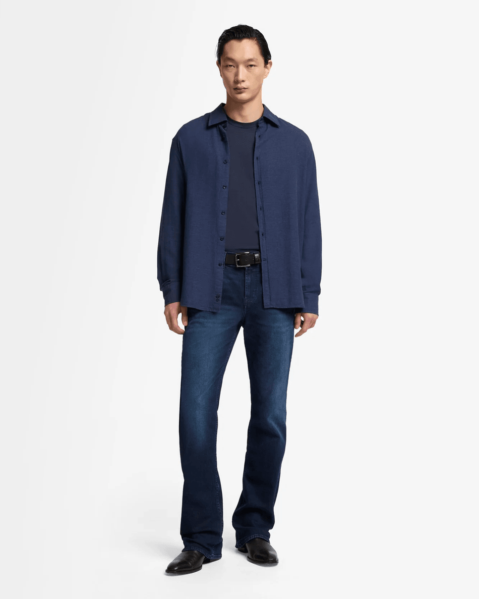 The 7 For All Mankind Cotton-Cashmere Button Up Shirt in Navy is designed for those who appreciate quality and style. The breathable fabric ensures you stay comfortable all day long, while the touch of cashmere adds a level of luxury you won’t want to miss. Whether paired with jeans for a laid-back look or dressed up with chinos for a polished ensemble, this shirt is your go-to option for versatile fashion.