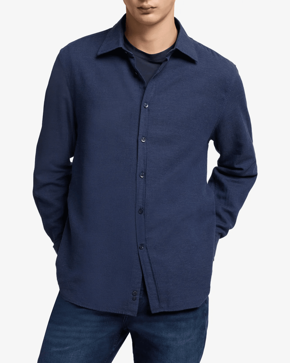7 For All Mankind Cotton-Cashmere Button Up Shirt in Navy Navy