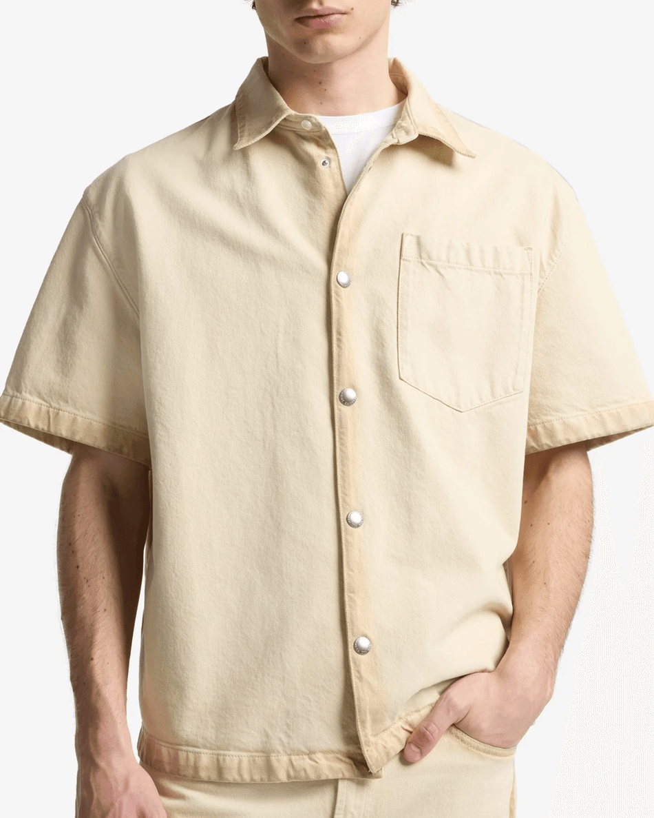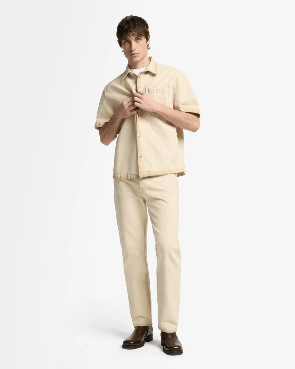 The 7 For All Mankind Denim Camp Shirt in Freehand is designed for effortless style. Its ecru wash gives it a unique, trendy look that pairs well with jeans, shorts, or chinos. The breathable fabric makes it ideal for both casual outings and relaxed weekends.