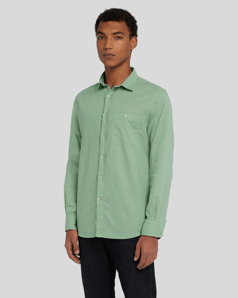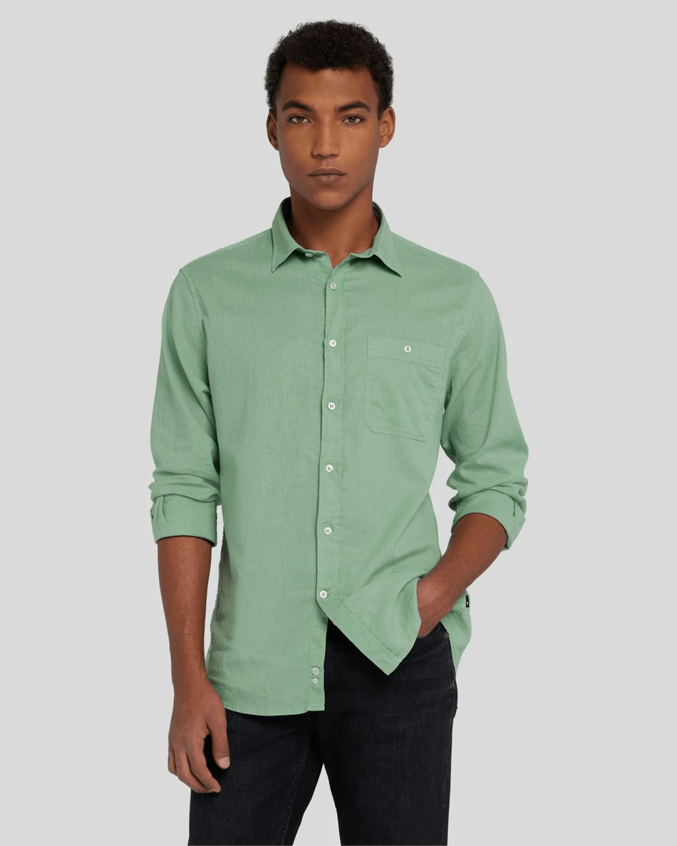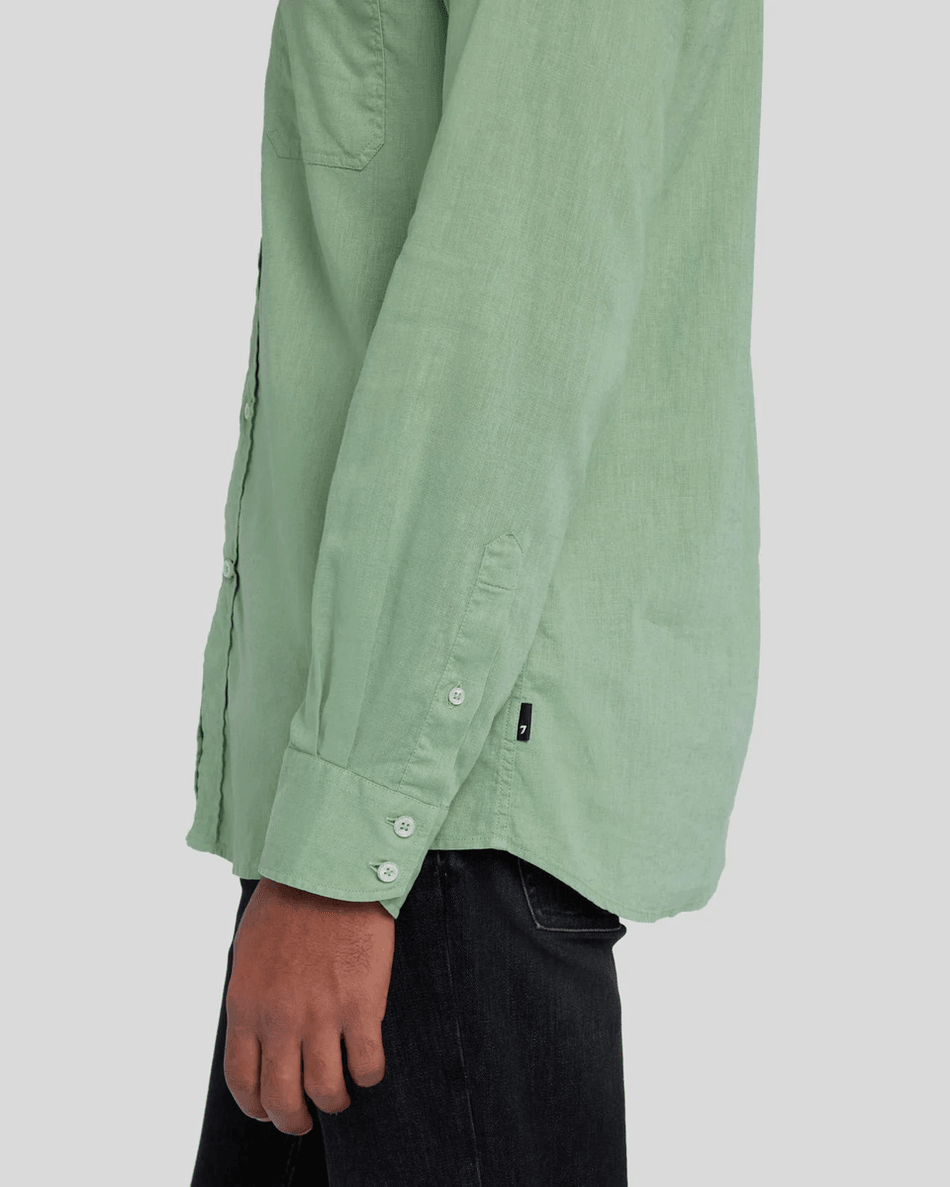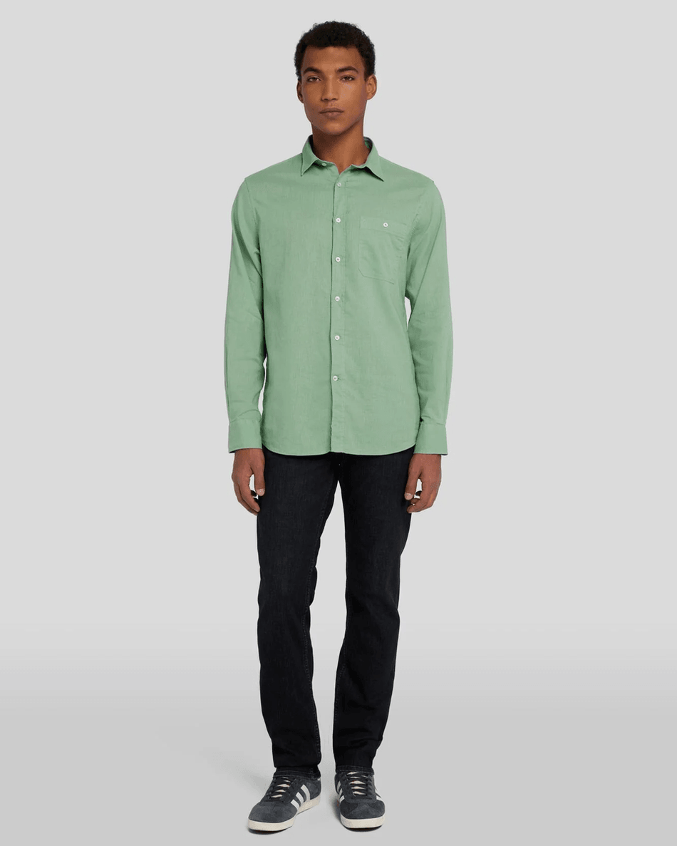 Discover the 7 For All Mankind Linen Blend Button Up Shirt in Celadon