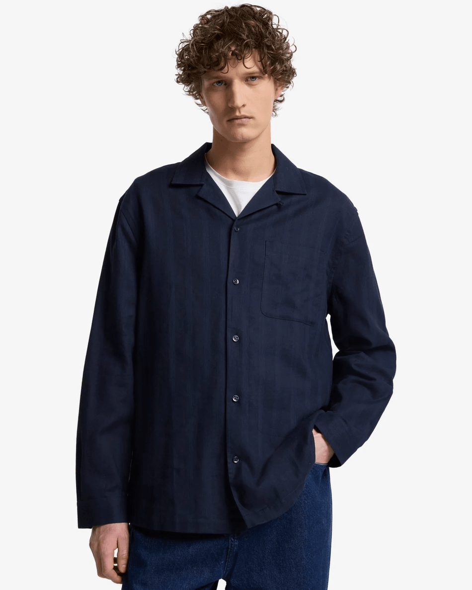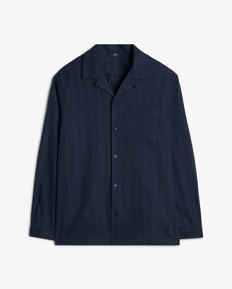 Elevate Your Style with the 7 For All Mankind Linen Blend Long Sleeve Camp Shirt in Navy