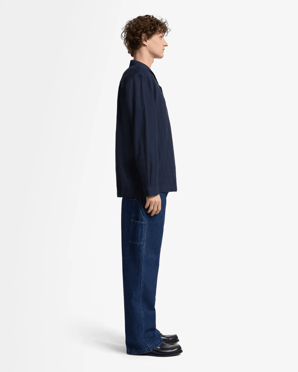 7 For All Mankind Linen Blend Long Sleeve Camp Shirt in Navy Navy
