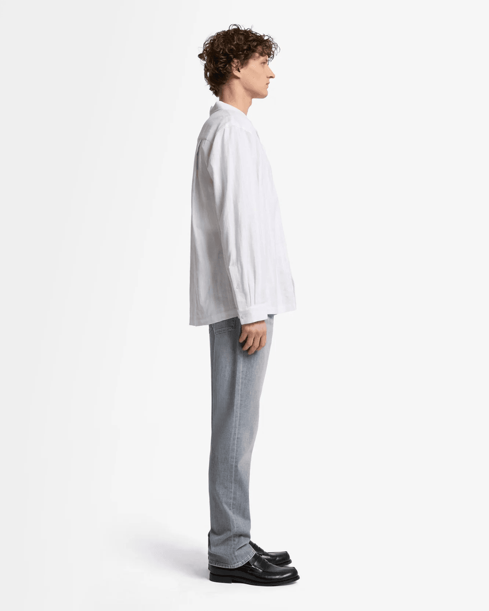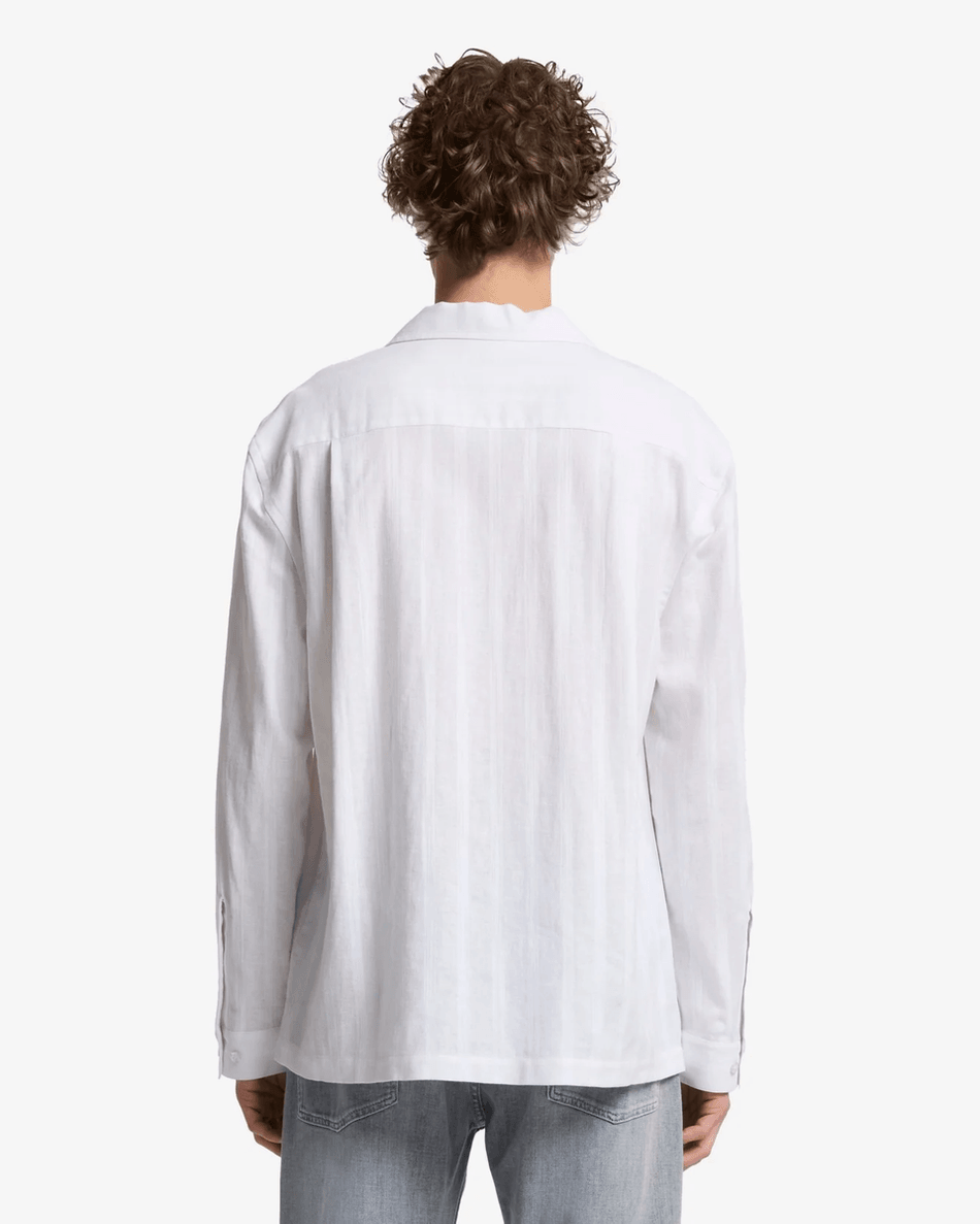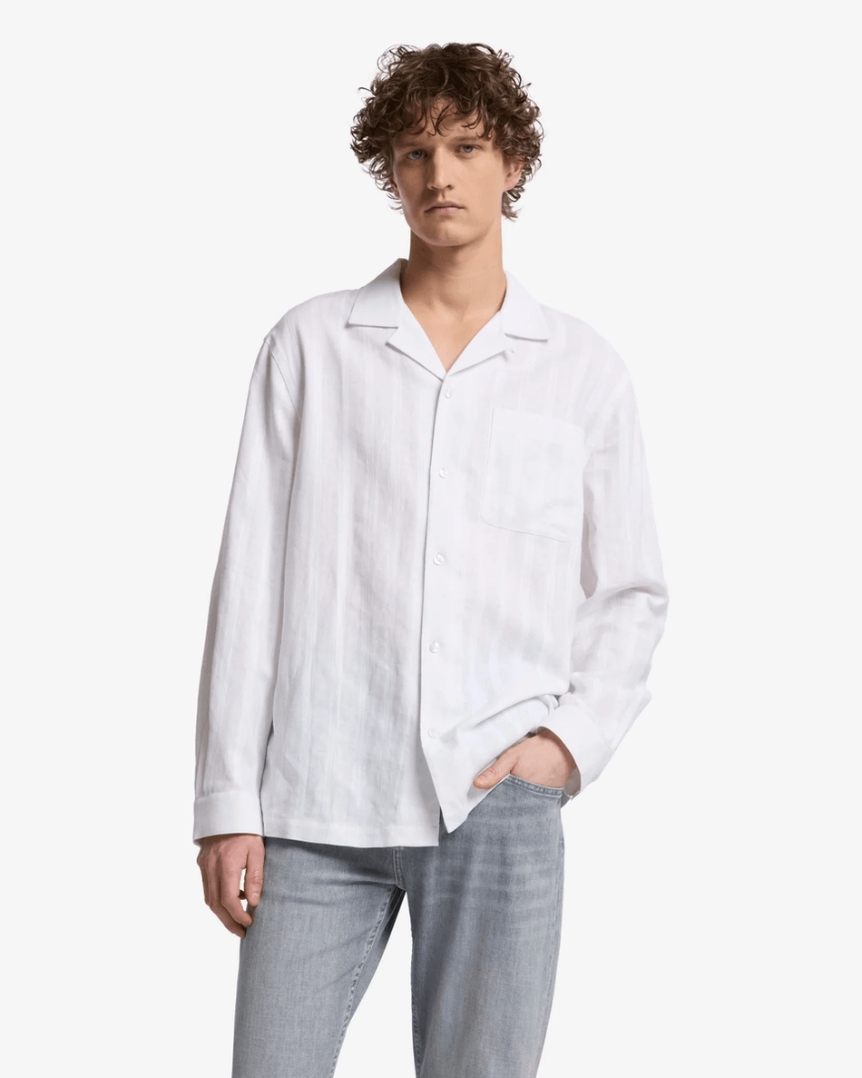 Elevate Your Style with the 7 For All Mankind Linen Blend Long Sleeve Camp Shirt in White