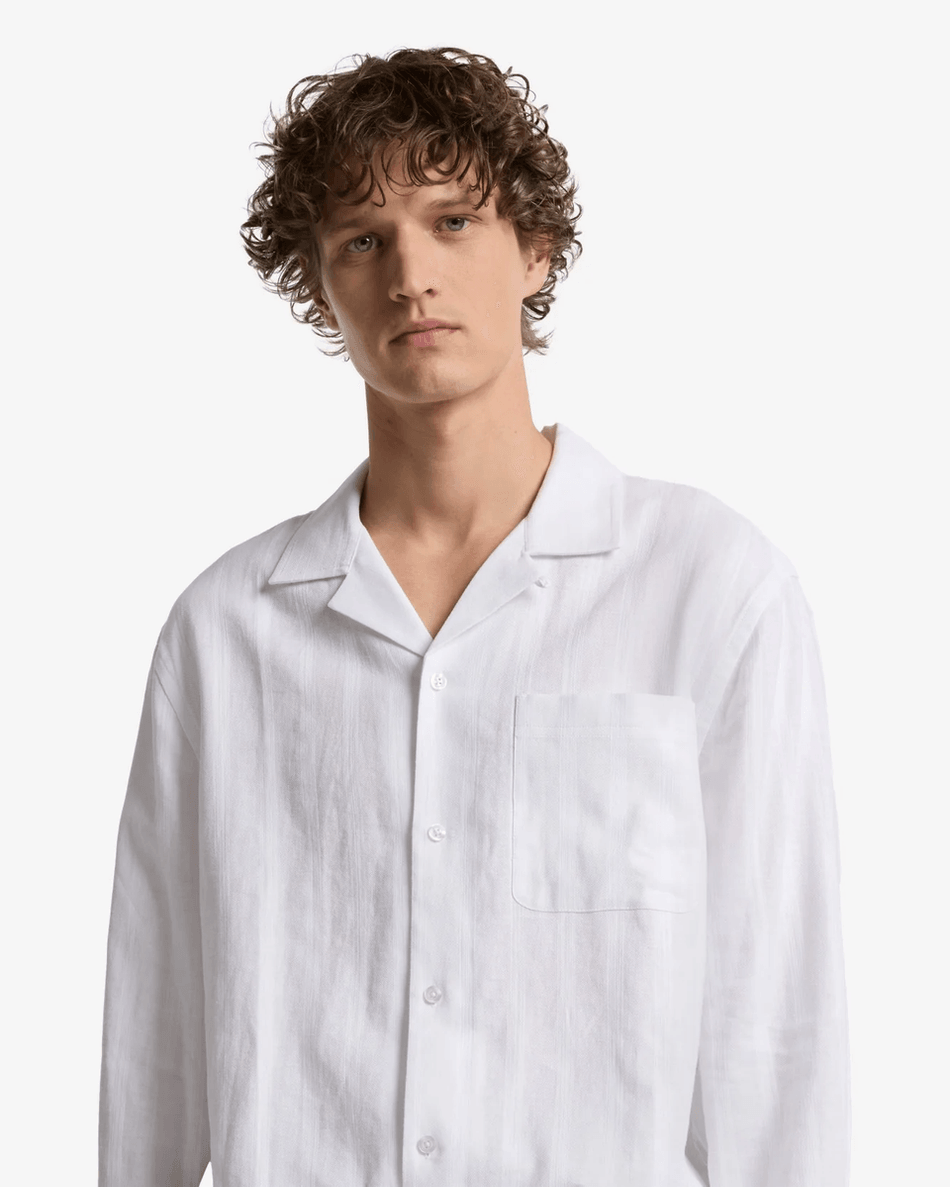 With its crisp white shade, this camp shirt pairs perfectly with shorts or chinos for a relaxed weekend look. The long sleeves offer versatility for cooler evenings, while the relaxed silhouette ensures you feel comfortable all day long. Elevate your casual wardrobe with this must-have staple.