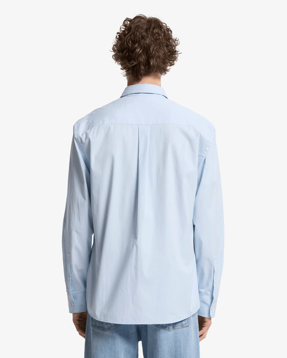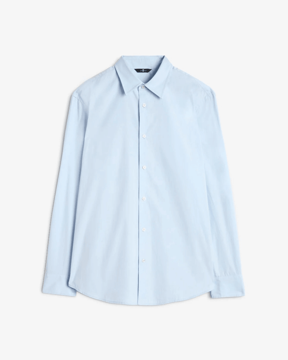 Elevate Your Wardrobe with the 7 For All Mankind Long Sleeve Poplin Shirt in Sky Blue