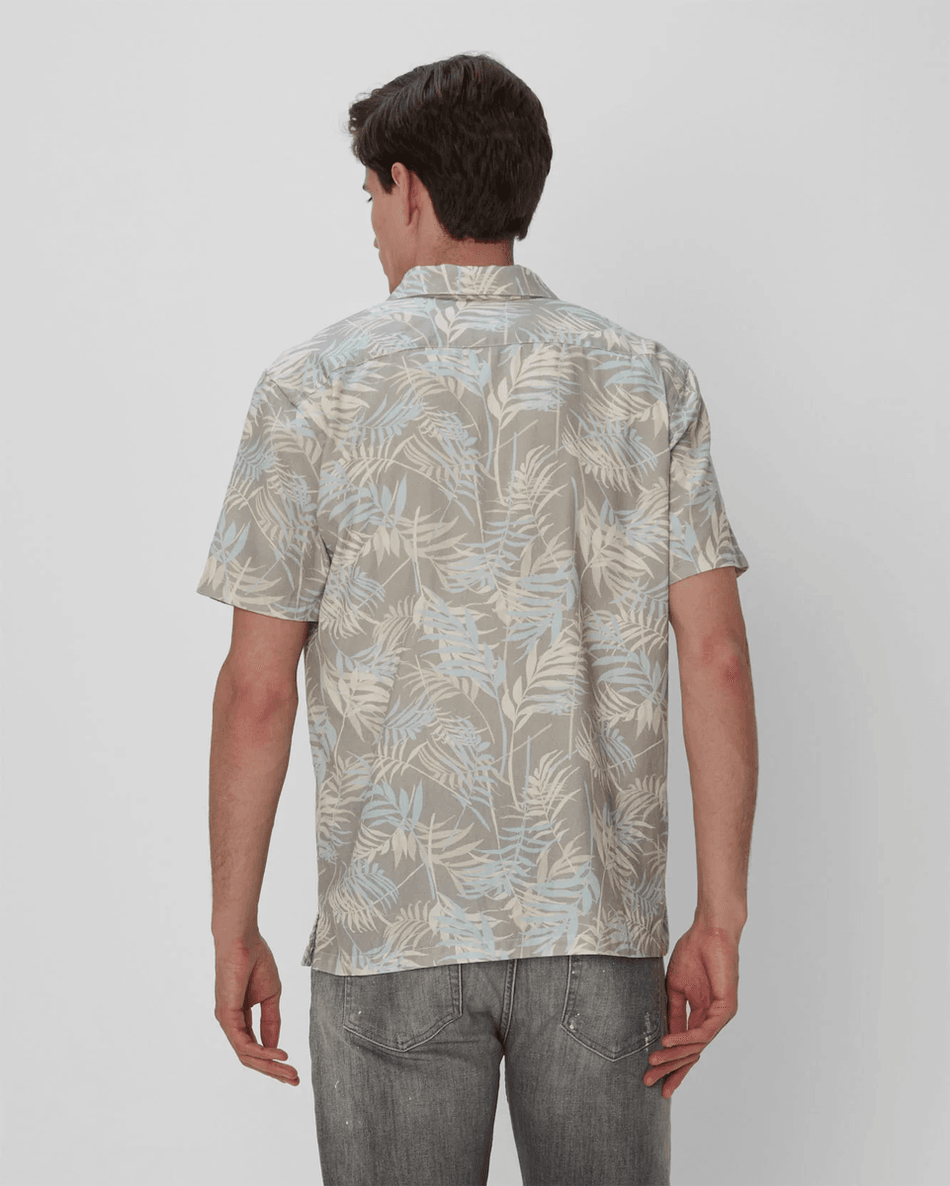Experience Effortless Style with the 7 For All Mankind Palm Print Camp Shirt in Indigo