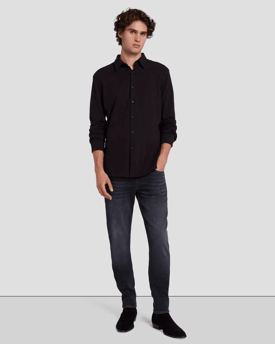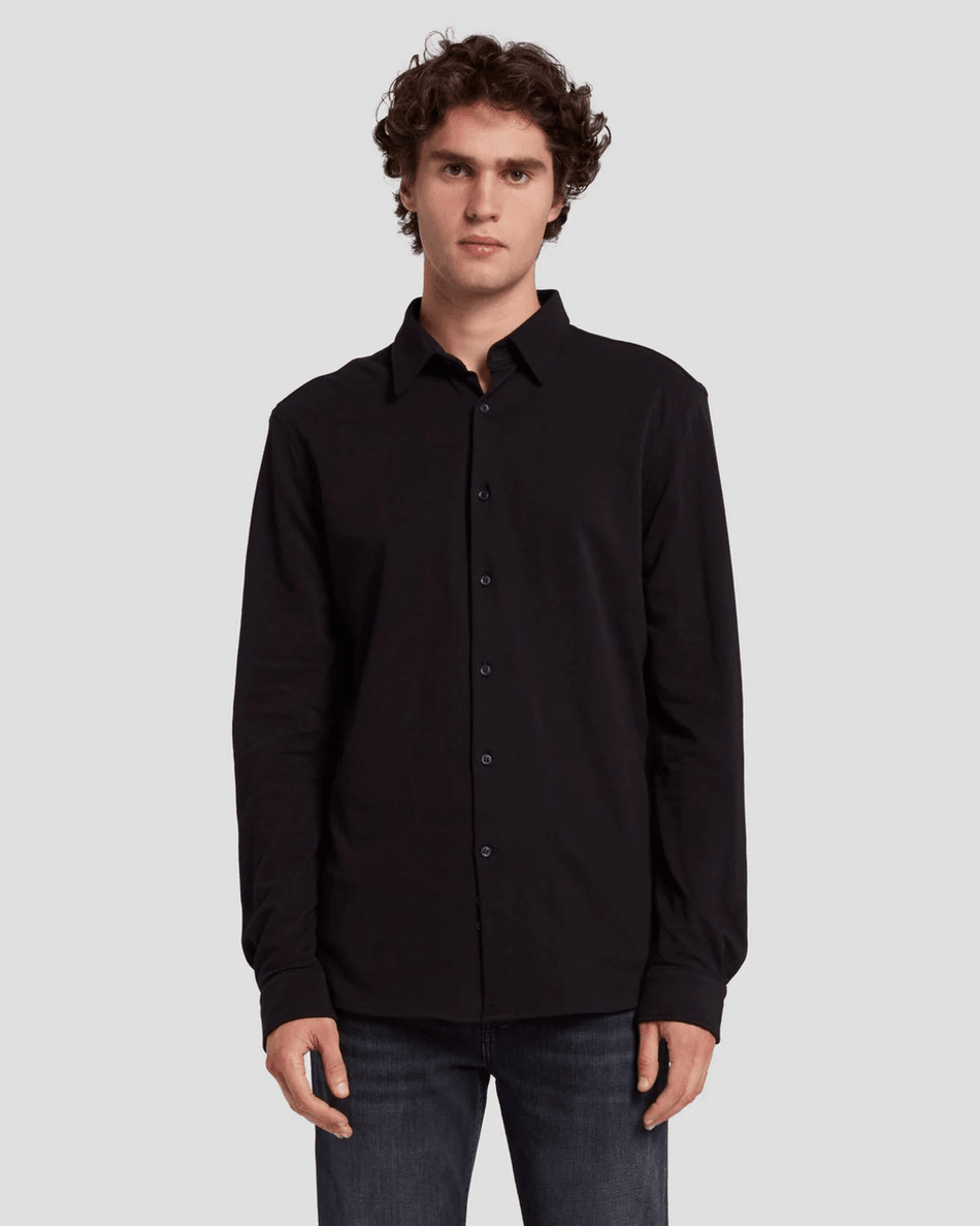 Elevate Your Style with the 7 For All Mankind Pique Knit Button Down in Black