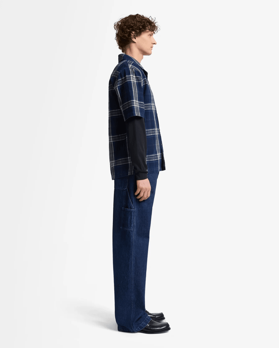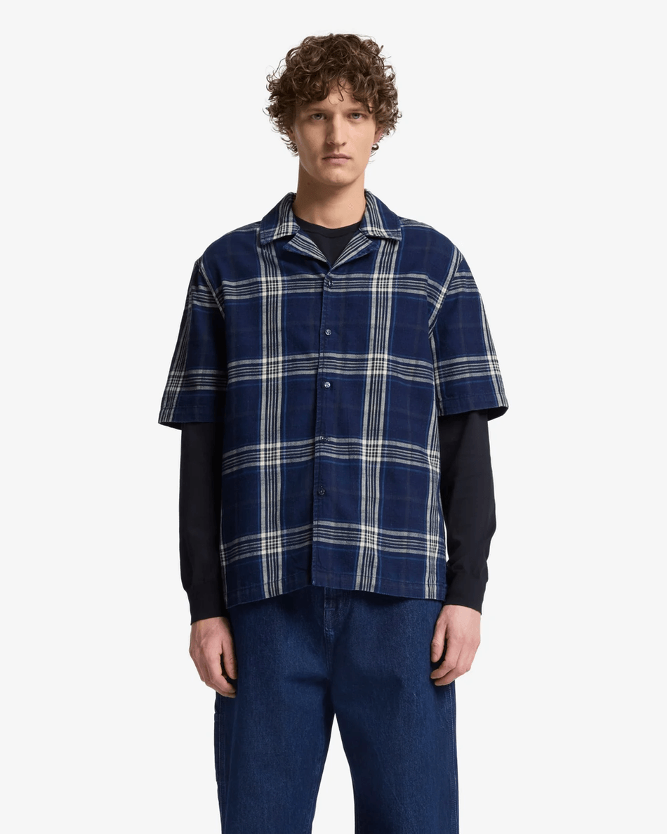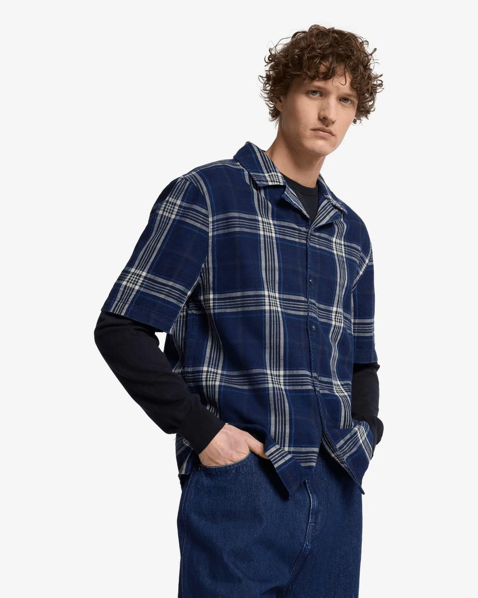 Discover the 7 For All Mankind Short Sleeve Camp Shirt in Indigo Check