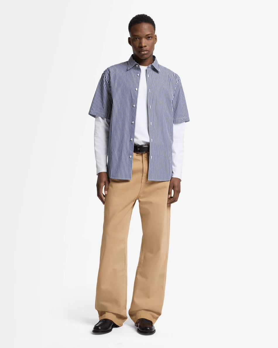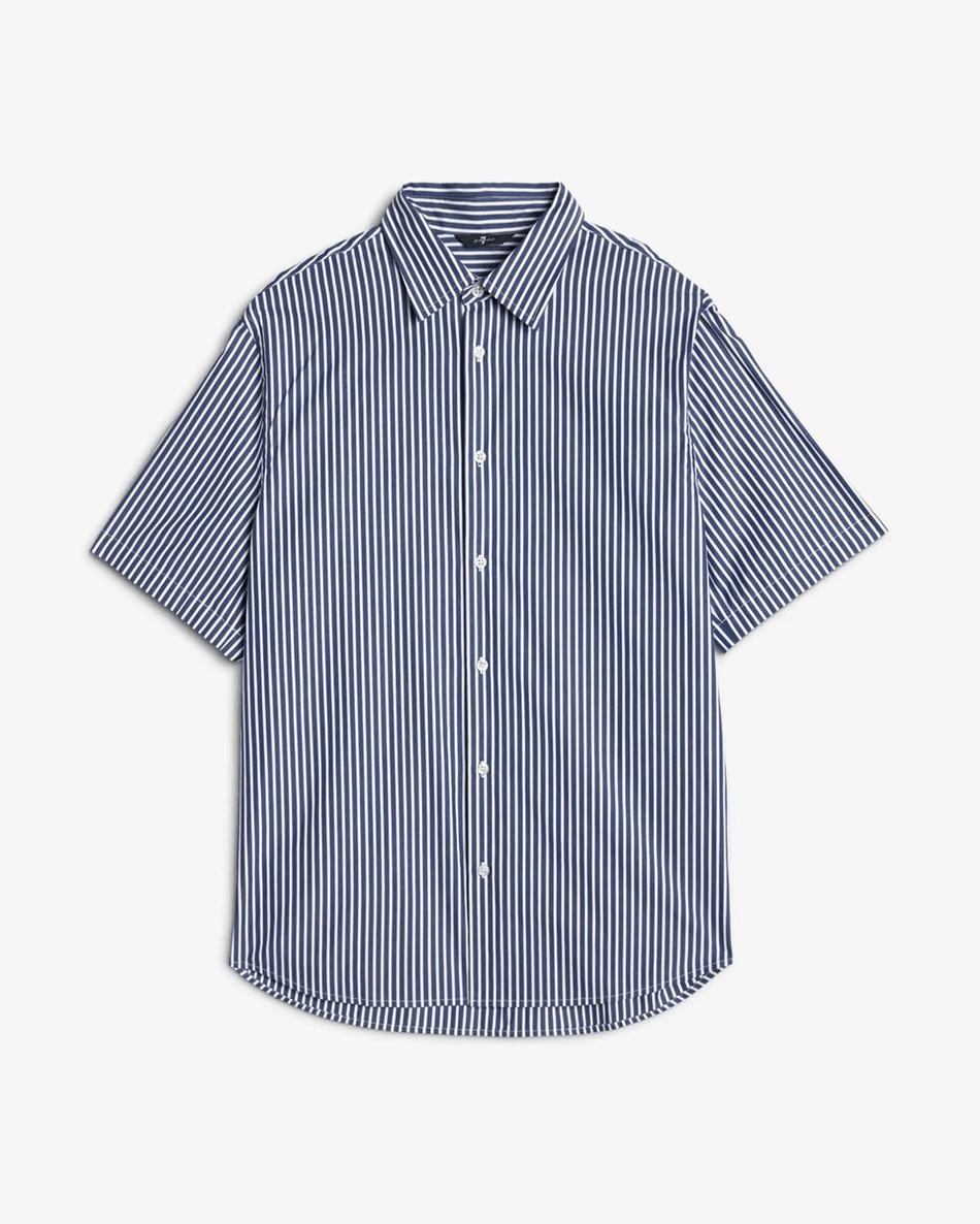 Discover the 7 For All Mankind Short Sleeve Poplin Shirt in Navy Stripe