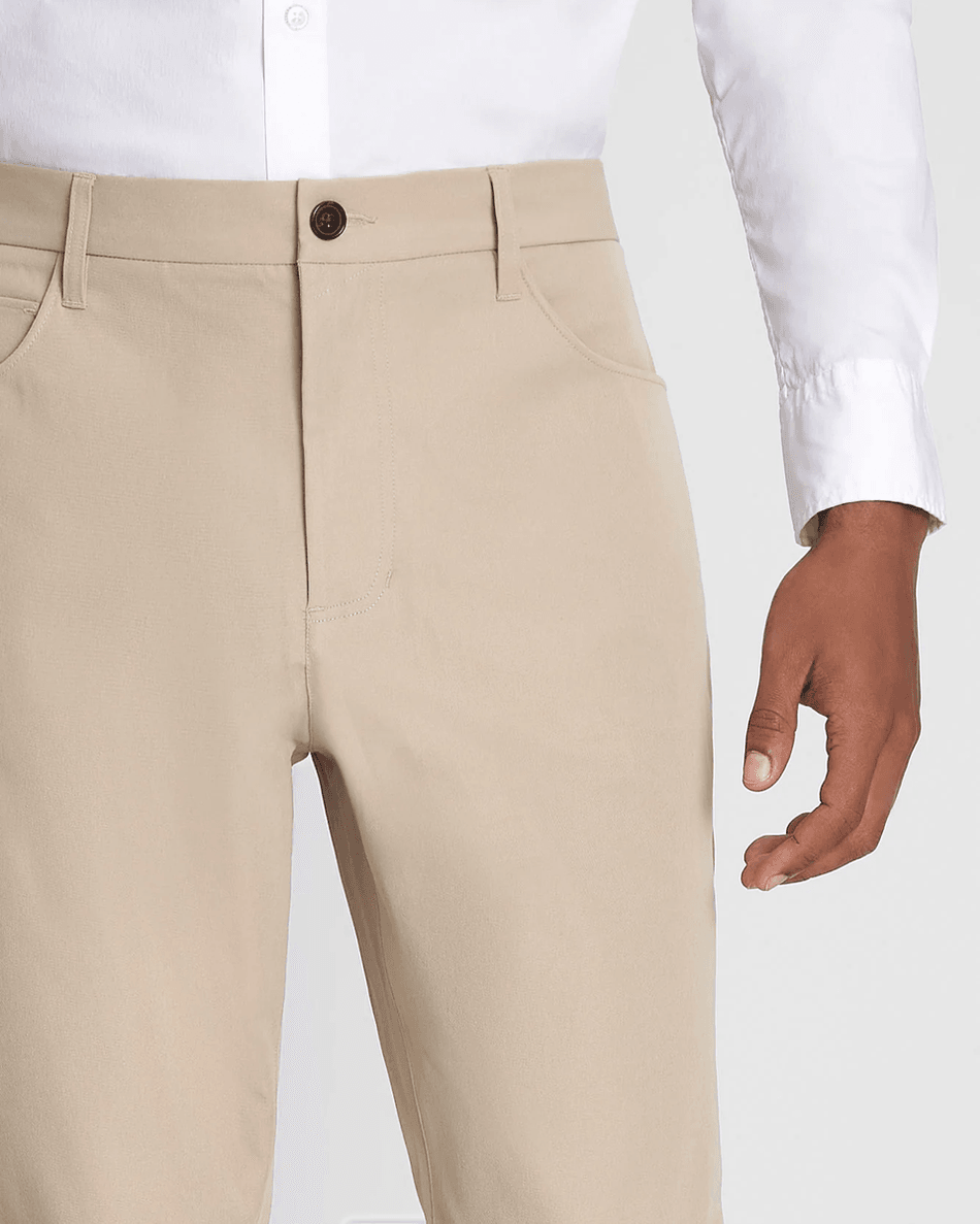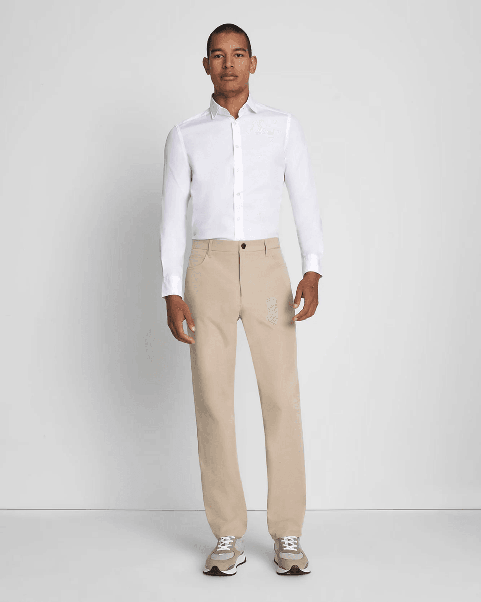 Elevate your wardrobe with the 7 For All Mankind Adrien Tech Series in Sand. This innovative pant combines classic styling with cutting-edge fabric technology, making it an essential addition for any fashion-forward individual.