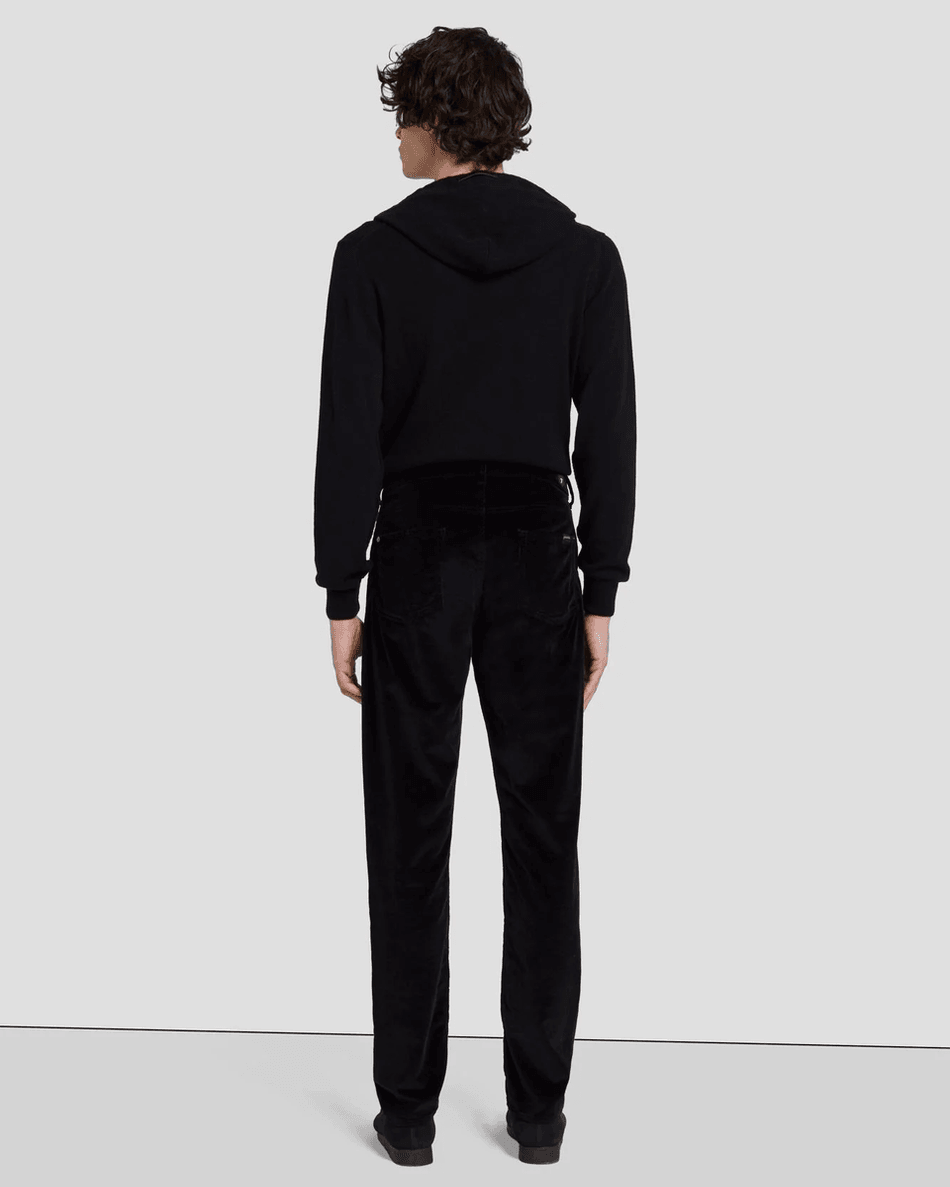 Elevate your wardrobe with the 7 For All Mankind Corduroy Slimmy Tapered in Black Black. This stylish trouser combines luxe textures and a contemporary design, making it the perfect choice for any occasion.