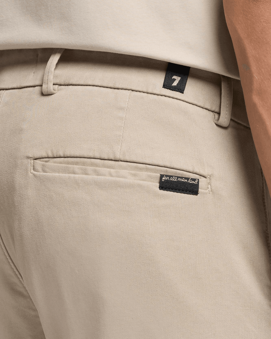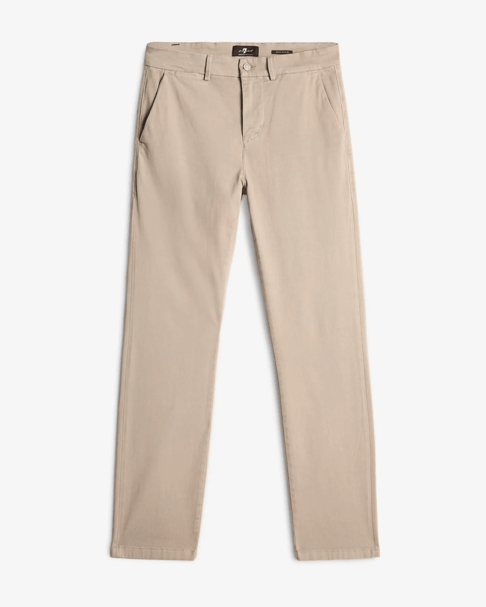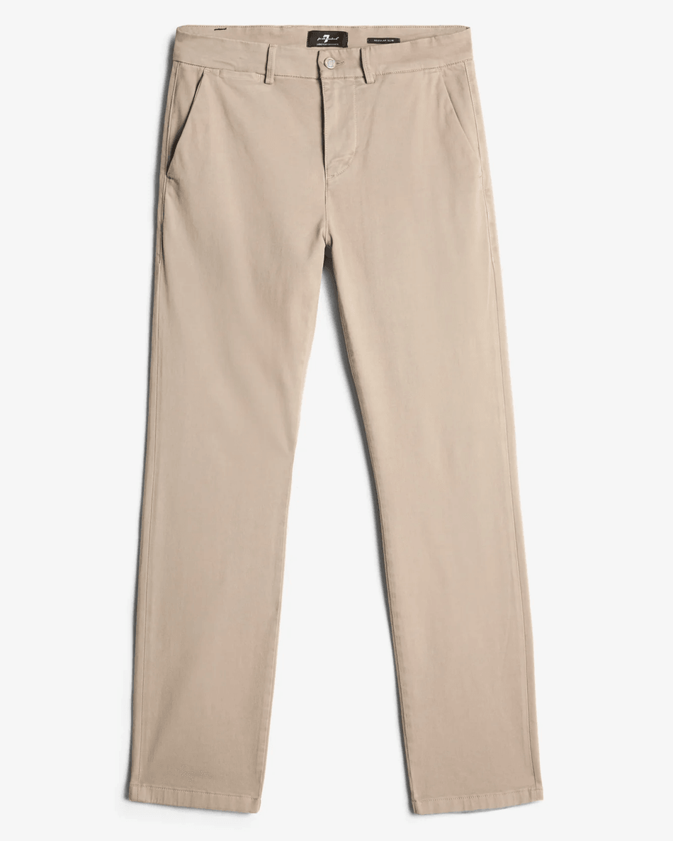 Elevate your wardrobe with the 7 For All Mankind Luxe Performance Slimmy Chino in Sunbuff. This stylish, slim-fit chino in a soft tan hue offers a tailored silhouette that elongates your legs and beautifully flatters your natural shape. Experience the perfect blend of comfort and sophistication with this essential piece.