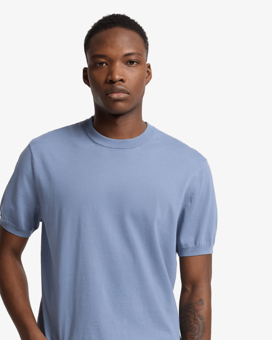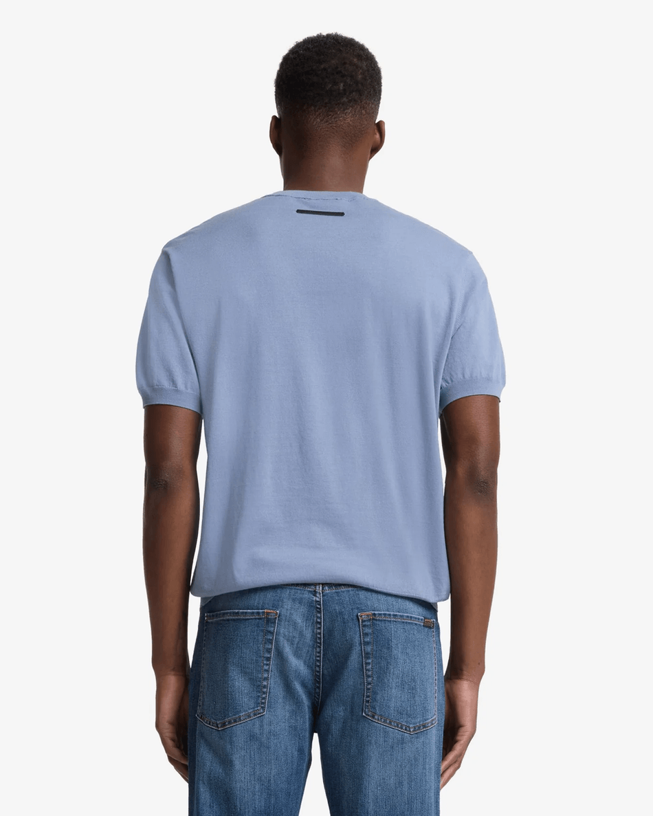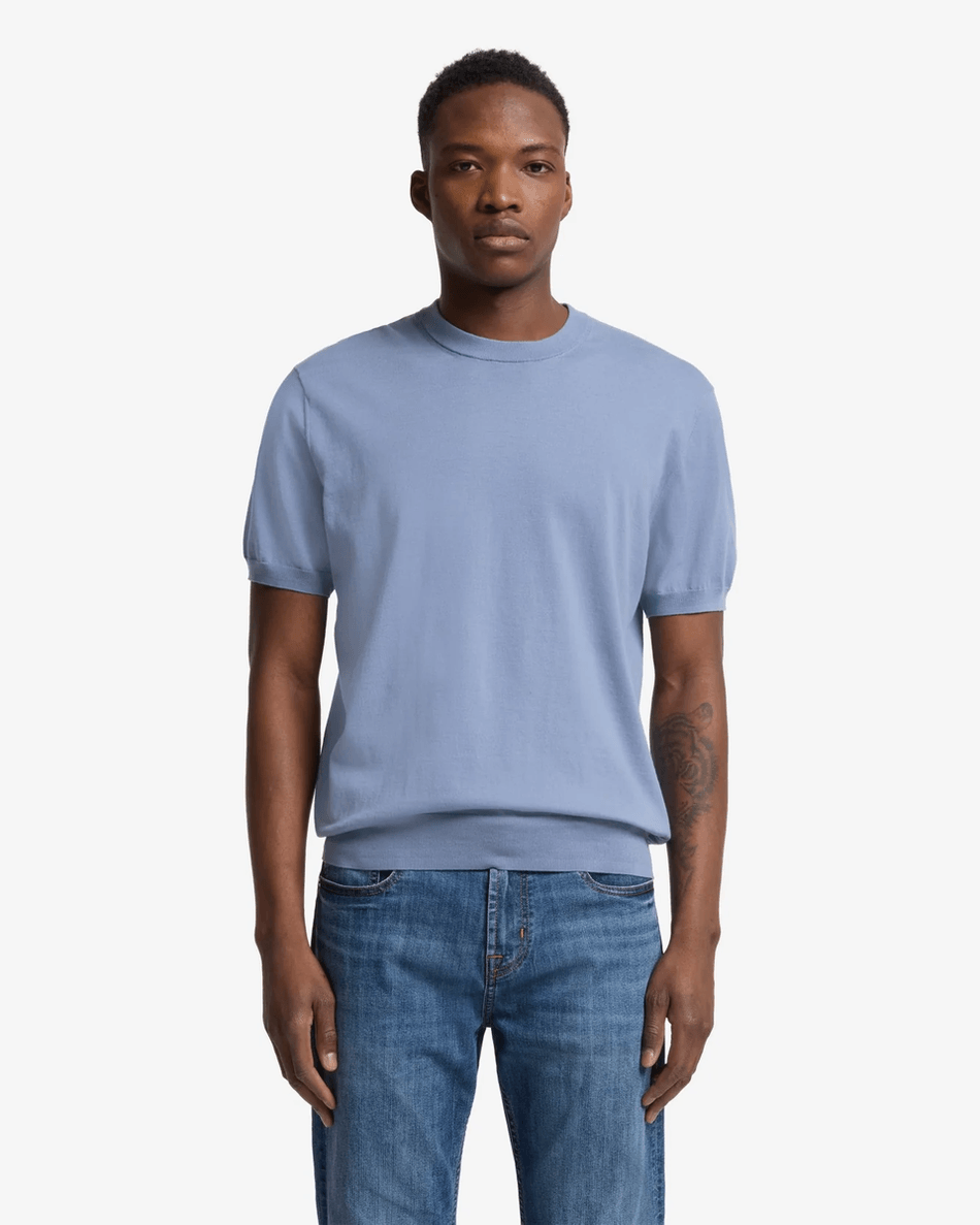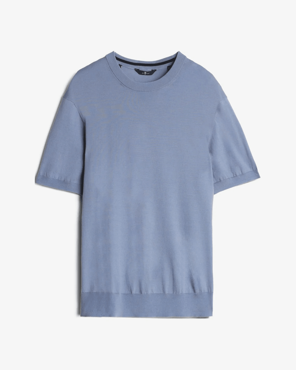 Discover the 7 For All Mankind Classic Cotton Short Sleeve Sweater in Slate Blue