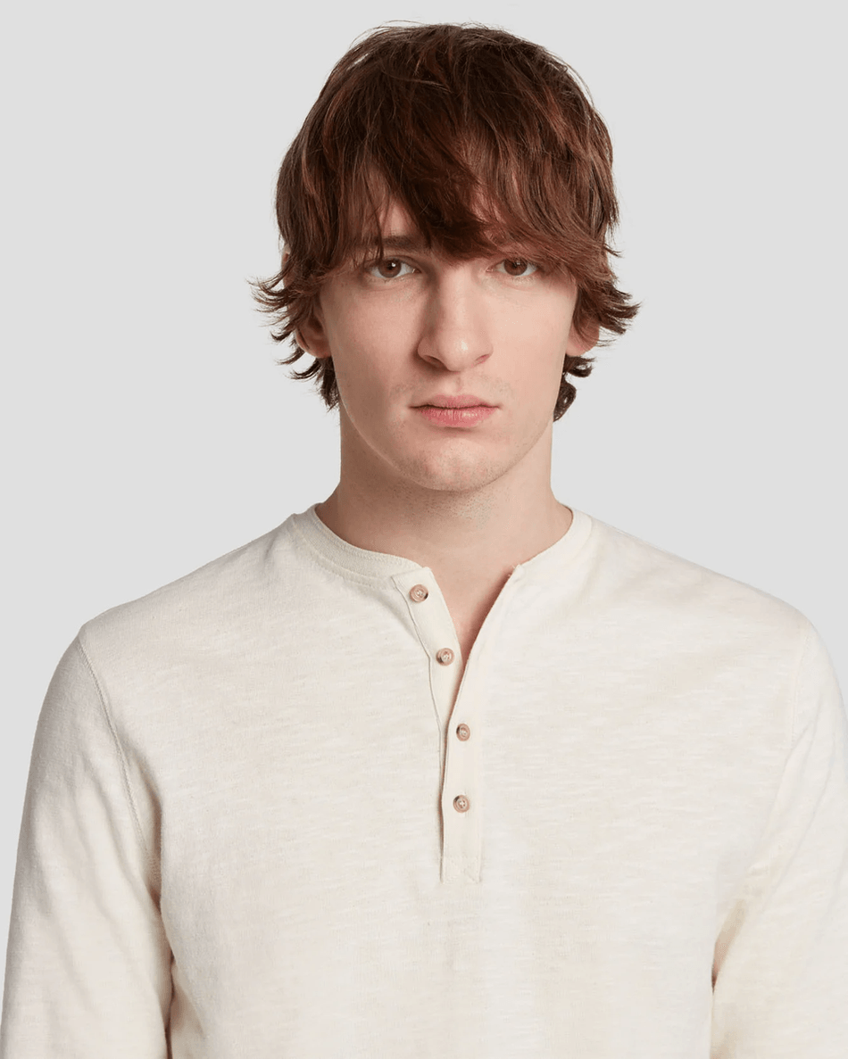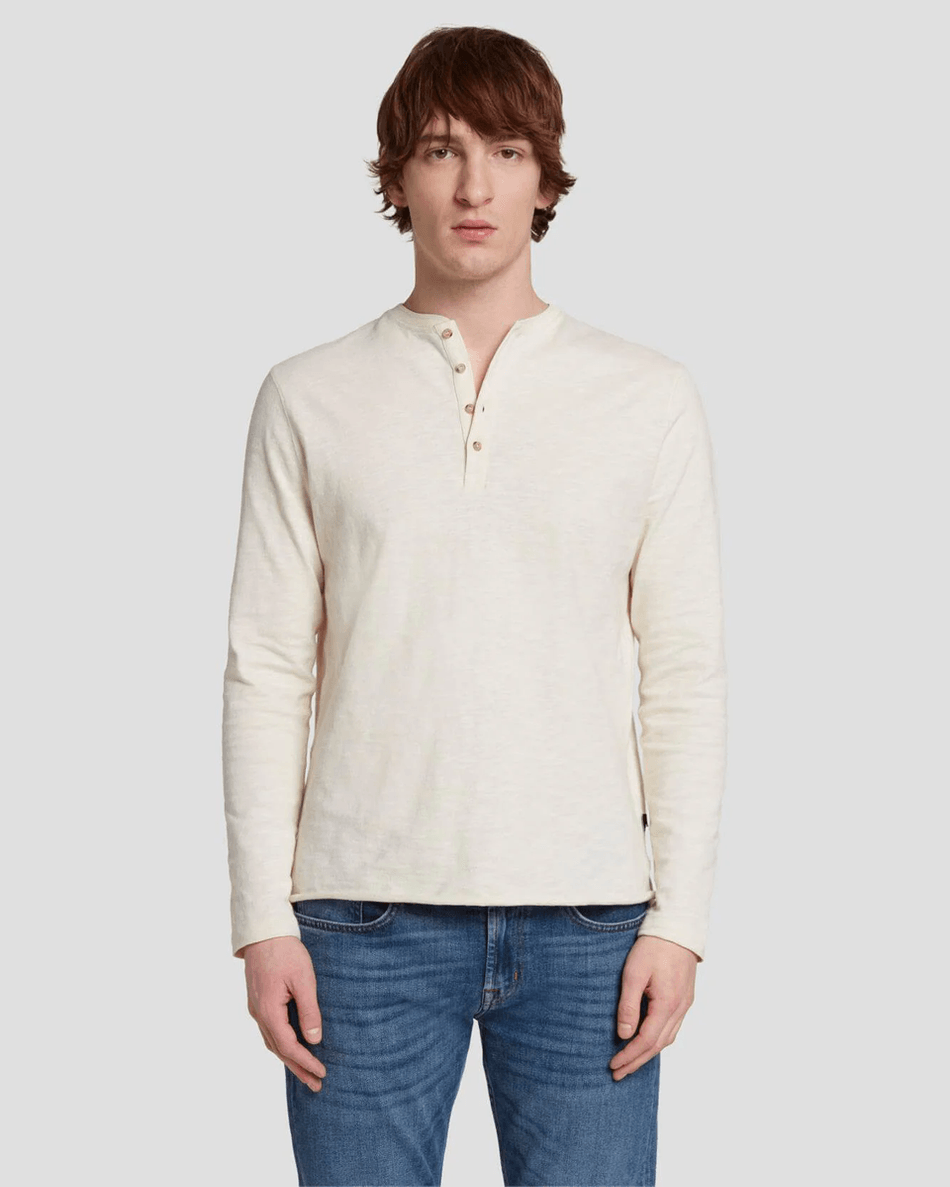 Discover the 7 For All Mankind Long Sleeve Henley in Dover White