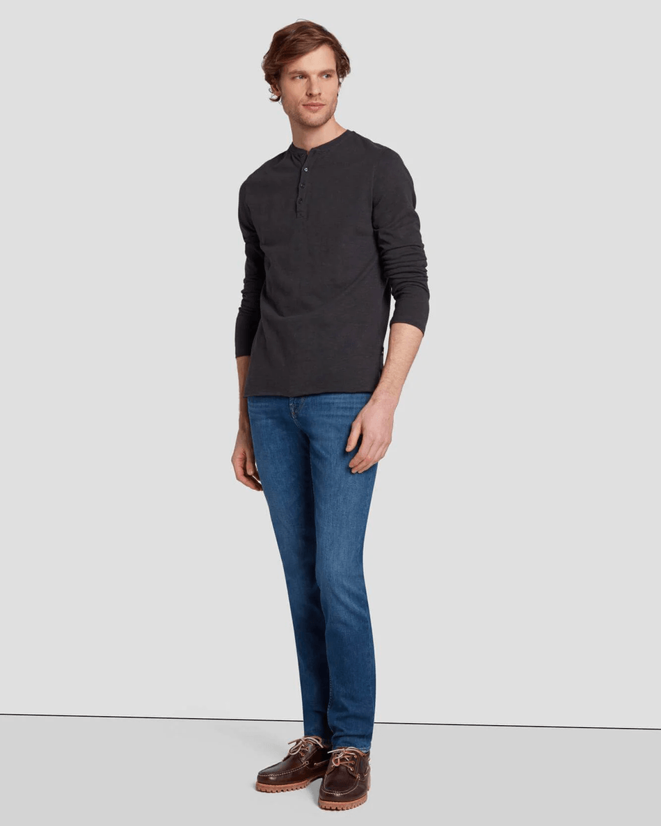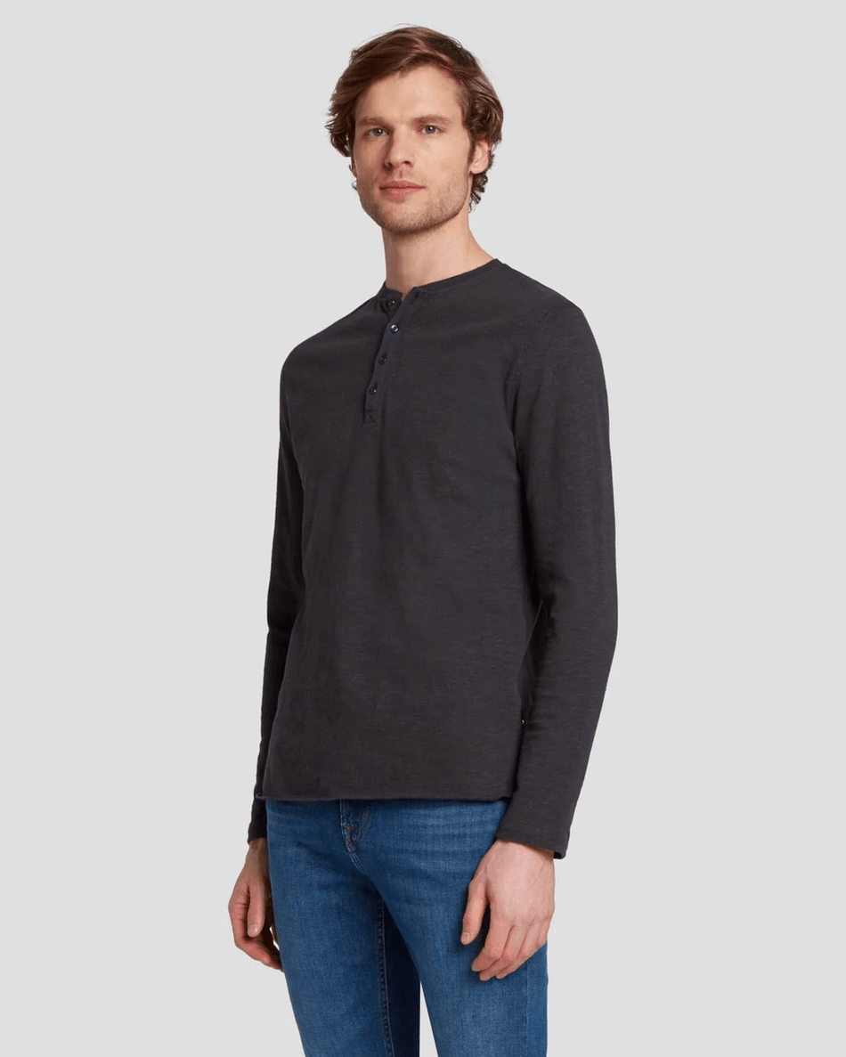 Discover the 7 For All Mankind Long Sleeve Henley in Naval Blue