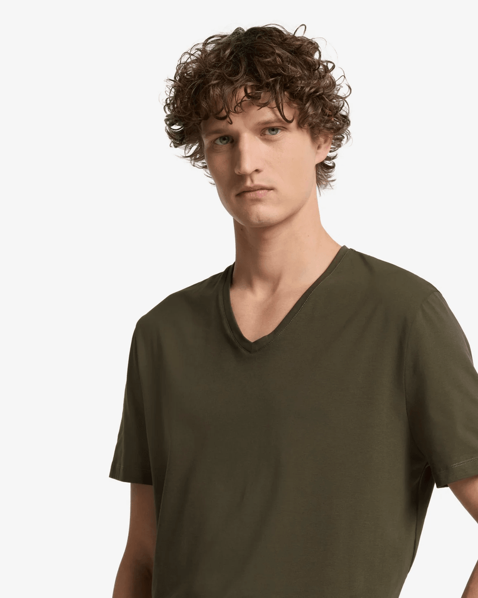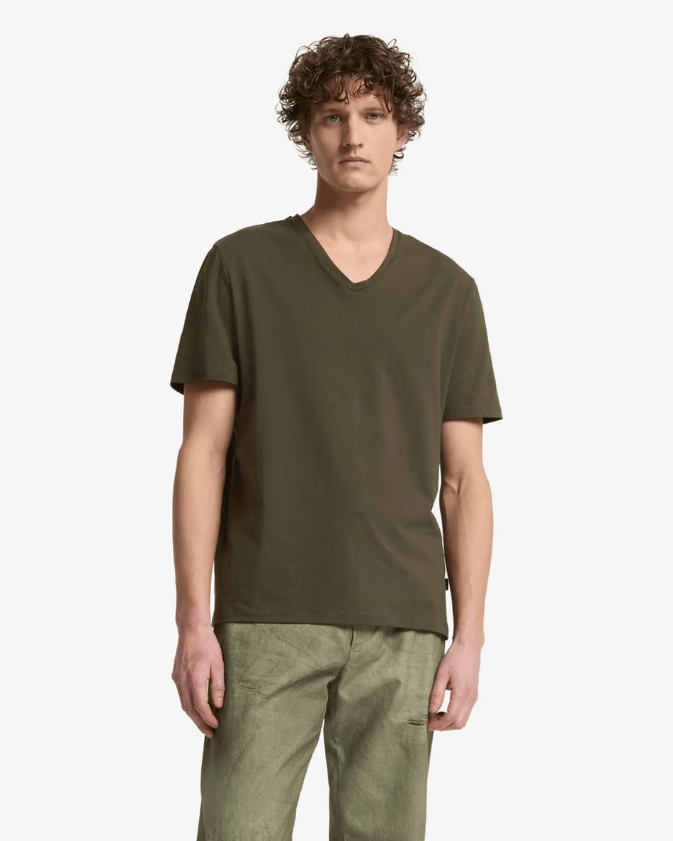 Discover the 7 For All Mankind Luxe Performance V-Neck Tee in Forest Green