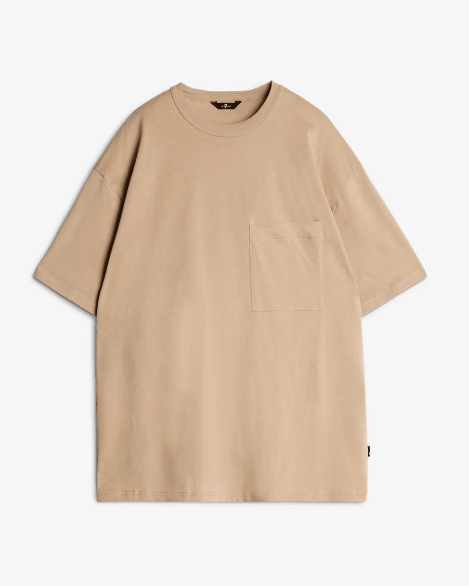 7 For All Mankind Short Sleeve Relaxed Tee in Beige Beige