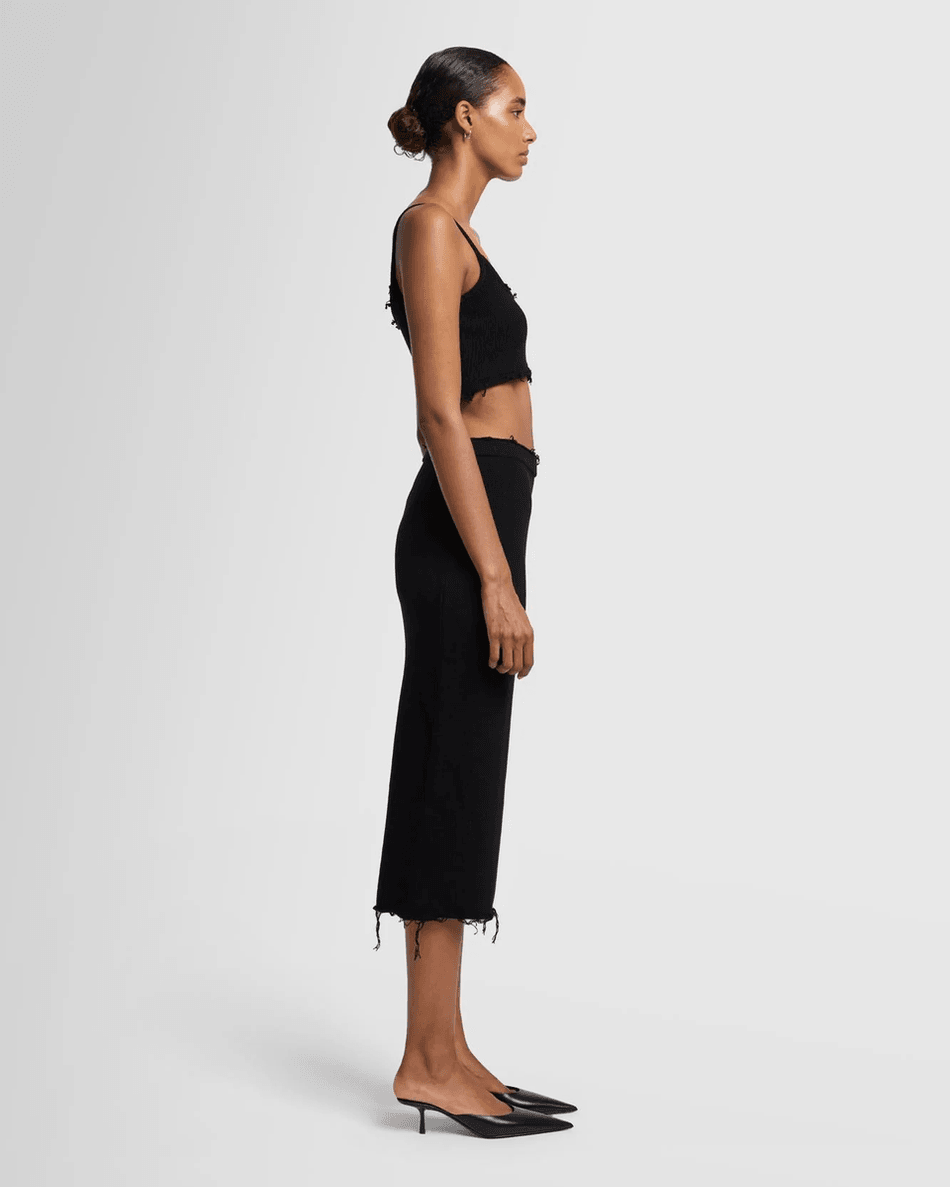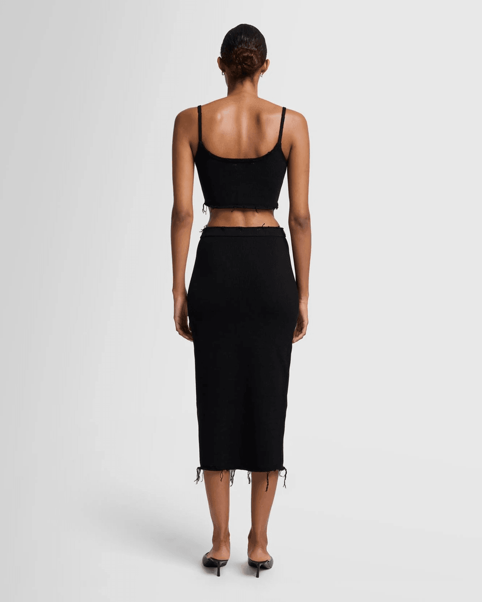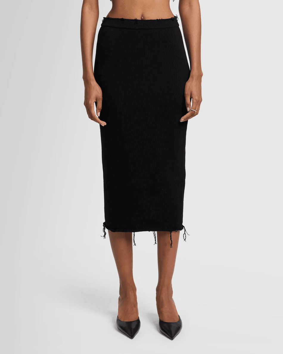 nu Rata Ocazia De A Deține fusta Midi Tricotată Deteriorată 7 For All Mankind în Negru Negru. Adaug-o în Coșul Tău Astăzi și Experimentează Fuziunea Perfectă între Stil și Confort!