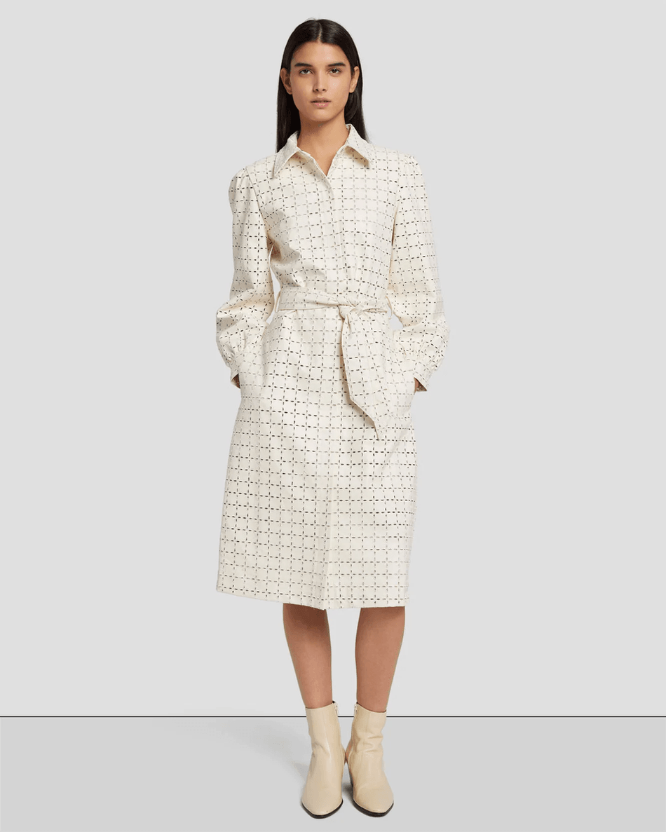 Elevate Your Style with the 7 For All Mankind Faux Leather Belted Shirt Dress in Cream