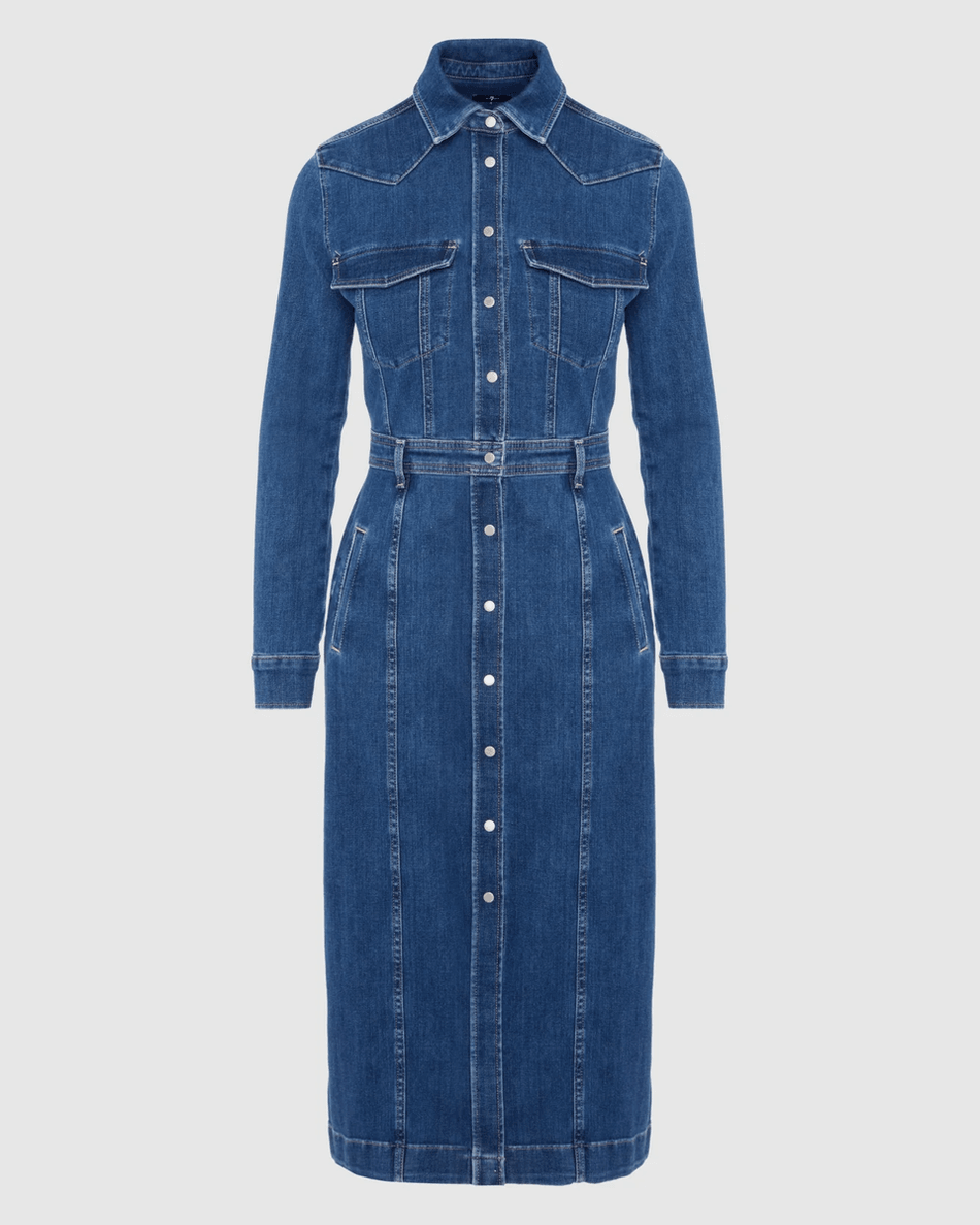 The 7 For All Mankind Luxe Dress in Lady Lady is crafted from luxurious soft denim, ensuring you stay comfortable without compromising on style. The classic dark blue wash features front seams that enhance the dress's sleek design, while the structured waistline flatters your figure beautifully.