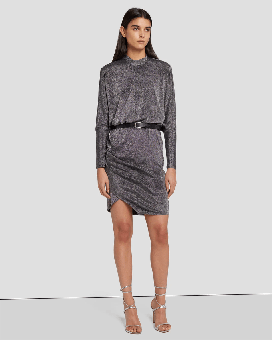 Step into the spotlight this season with the stunning 7 For All Mankind Party Dress in Gunmetal. This exquisite long sleeve dress is designed to make you shine with its subtle shimmers, perfect for holiday gatherings and special occasions.