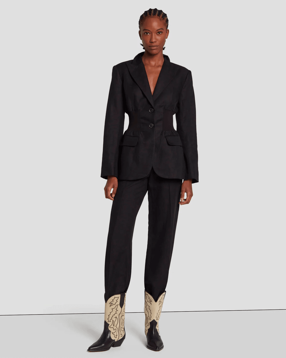 Elevate Your Style with the 7 For All Mankind Cinched Waist Linen Blazer in Black Black