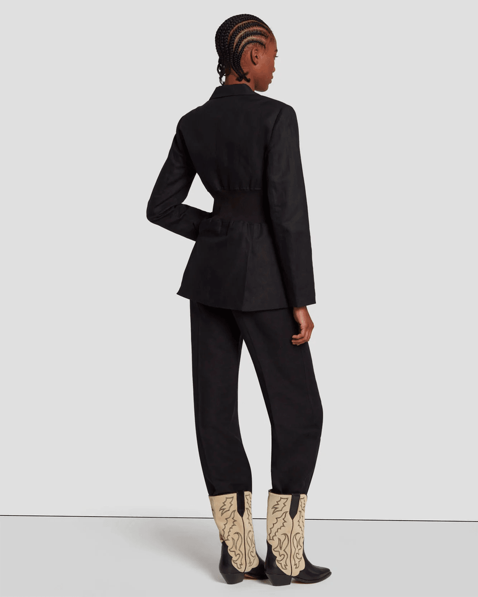 7 For All Mankind Cinched Waist Linen Blazer in Black Black