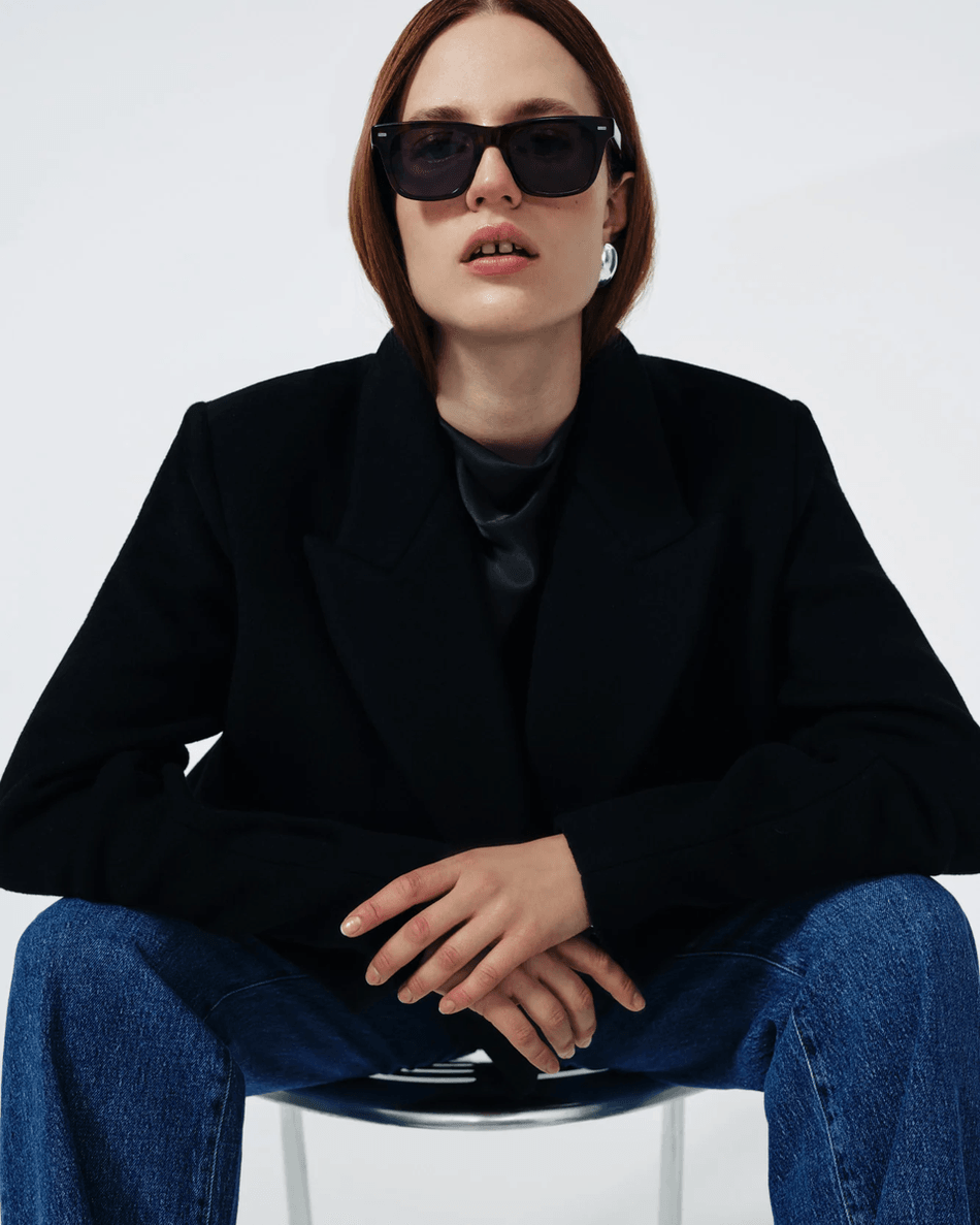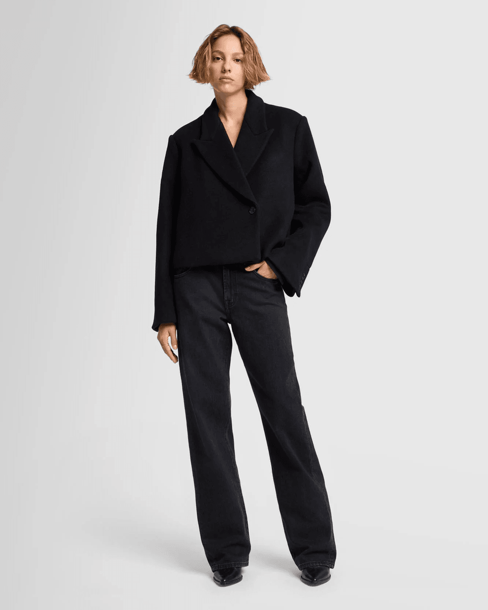 Elevate Your Style with the 7 For All Mankind Cropped Wool Jacket in Black