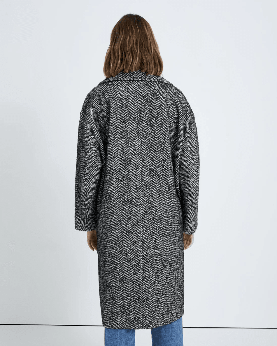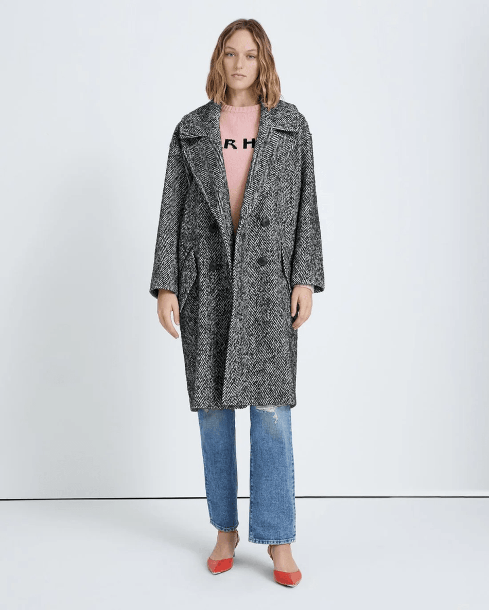 7 For All Mankind Double Breasted Wool Coat in Herringbone Herringbone