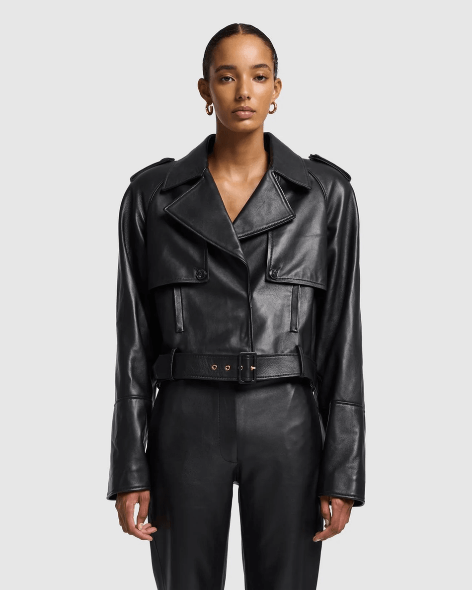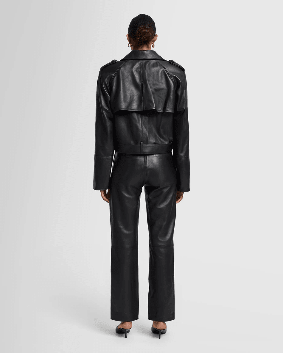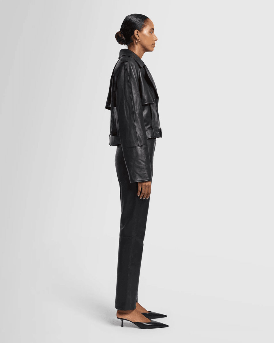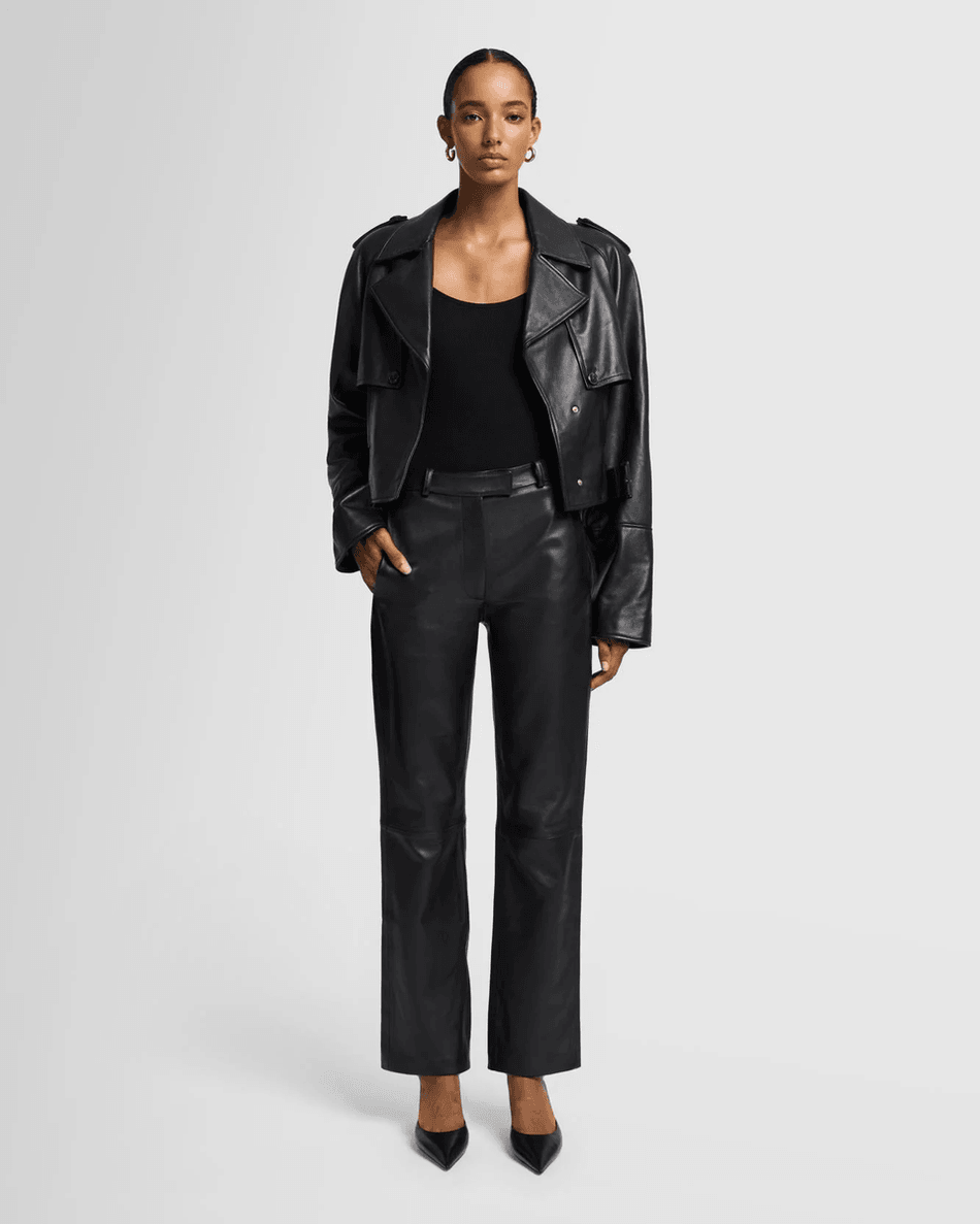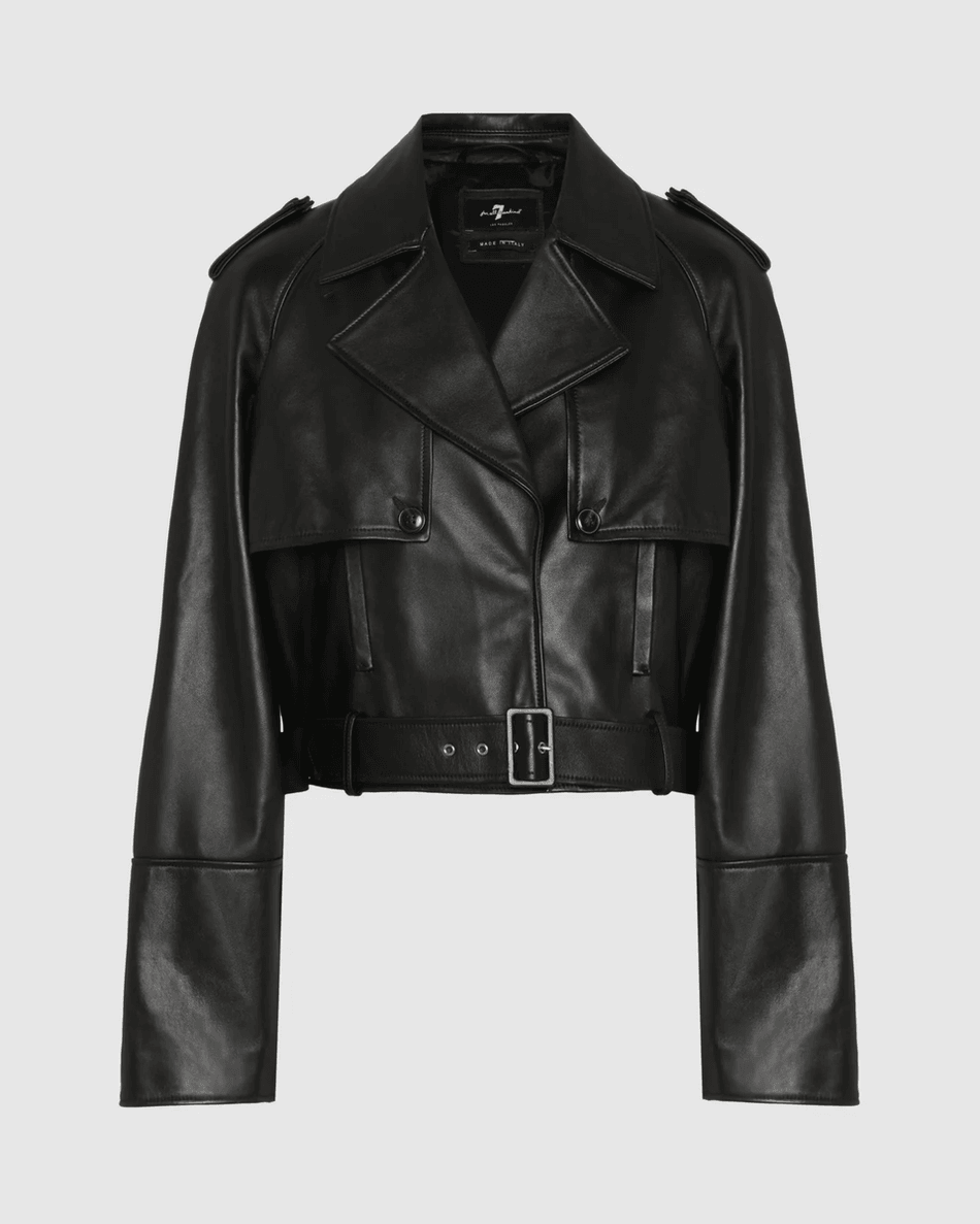 Experience Luxury with the 7 For All Mankind Italian Leather Cropped Moto Jacket in Black