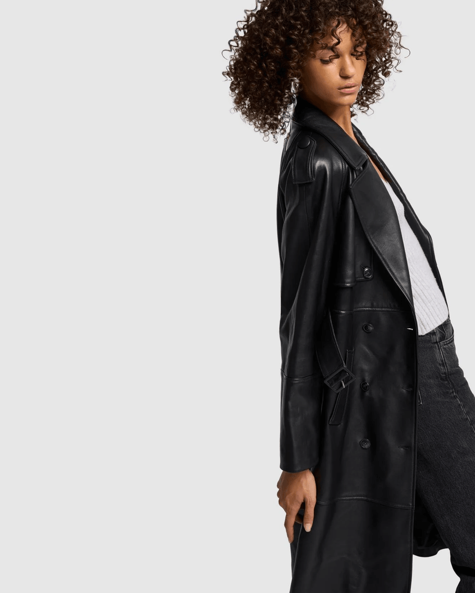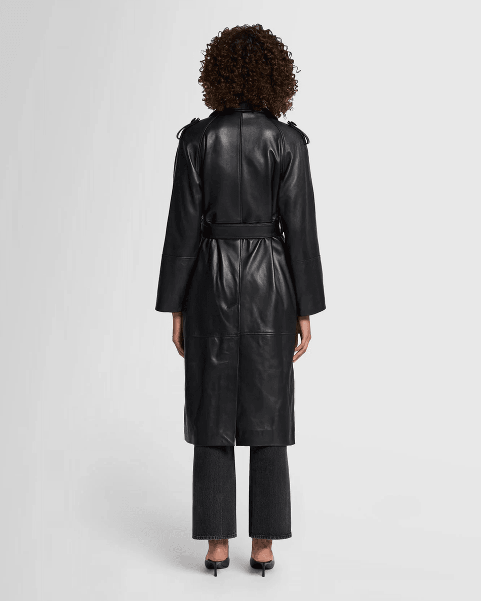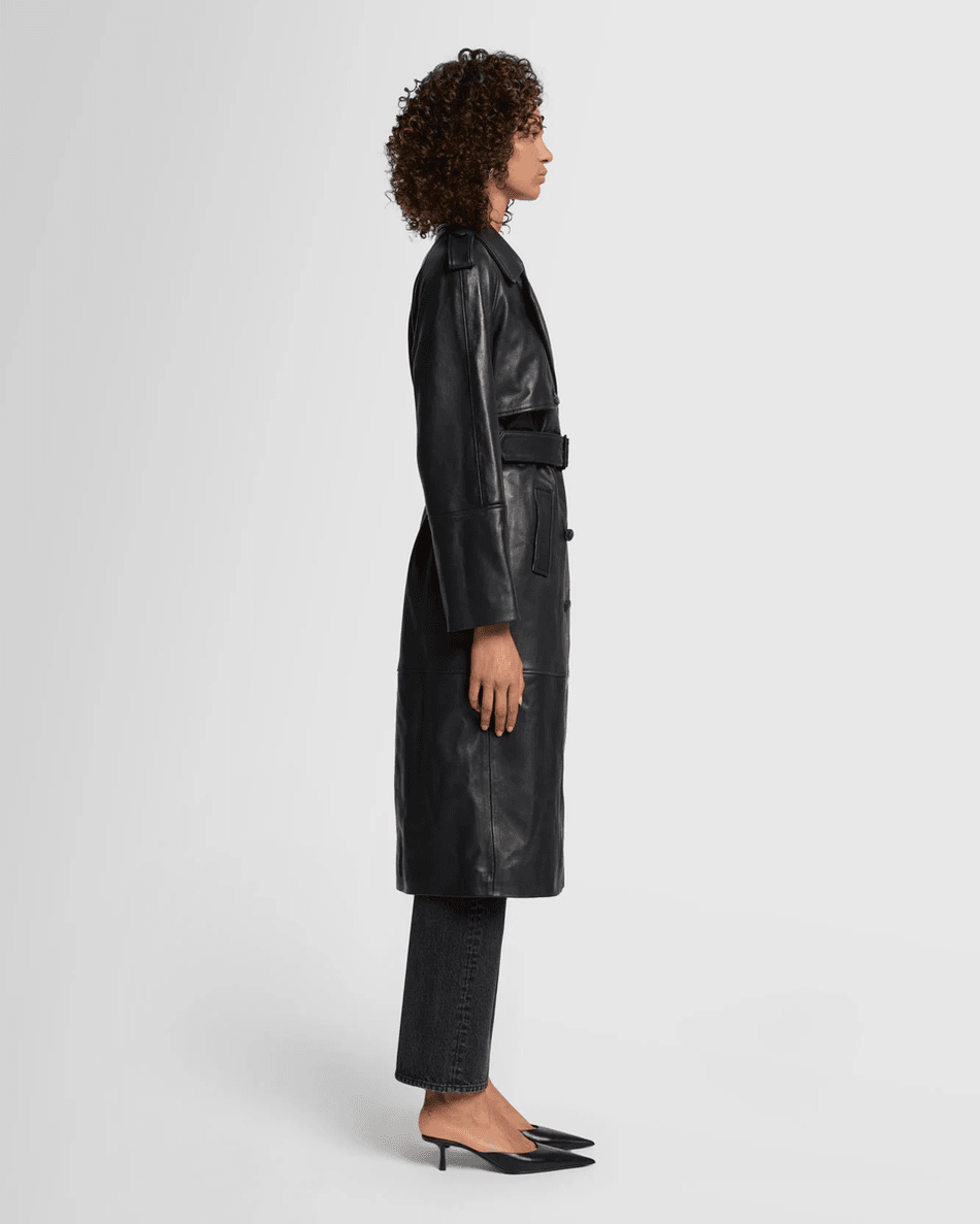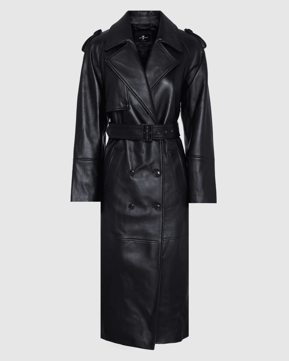 Discover the 7 For All Mankind Italian Leather Trench Coat in Black