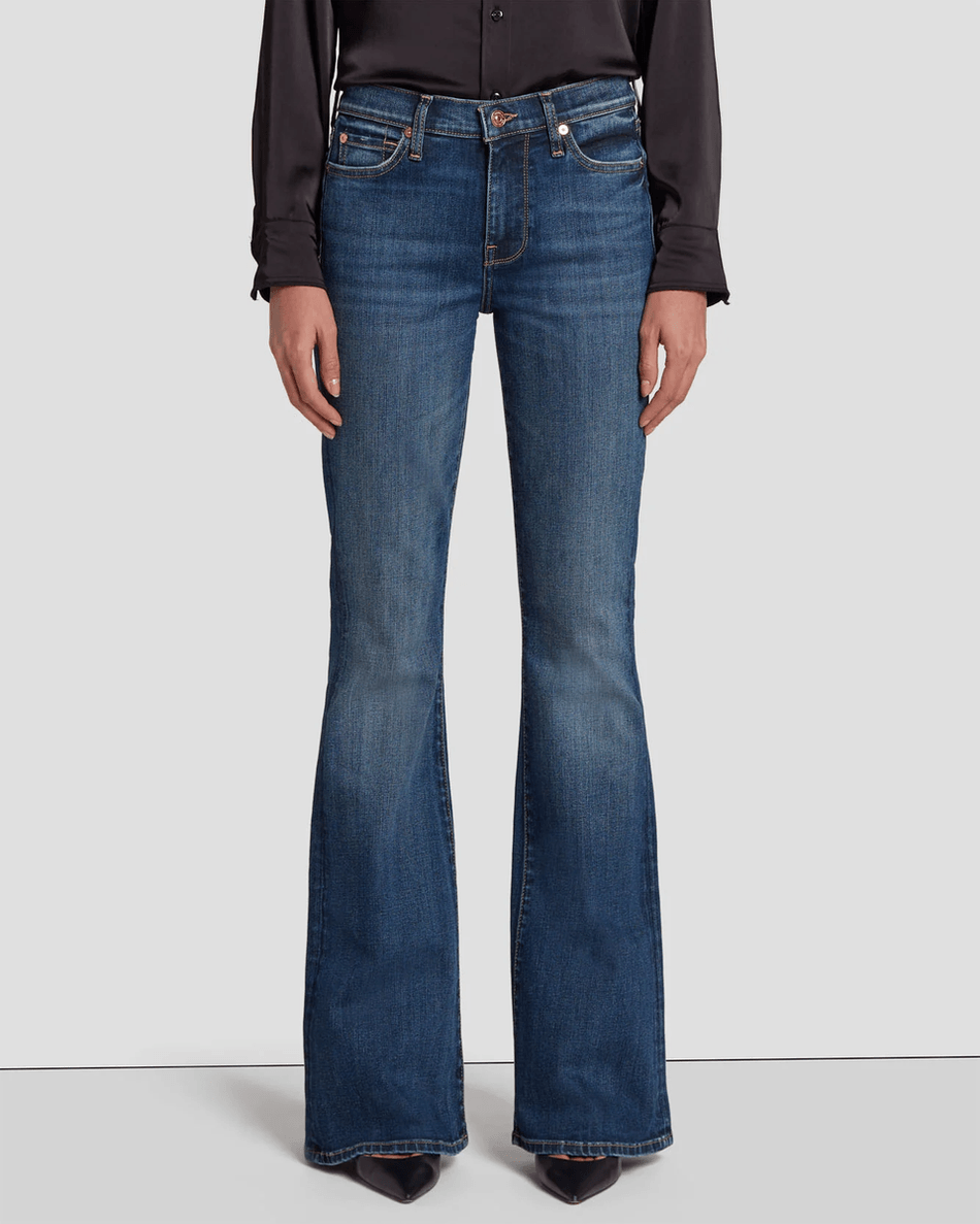 The 7 For All Mankind Ali in Nolita Dark is a must-have staple for any fashion-savvy woman. The mid-rise cut ensures all-day comfort while maintaining a chic appearance. The flared finish below the knee not only enhances the look but also provides versatility, allowing you to transition from day to night effortlessly.