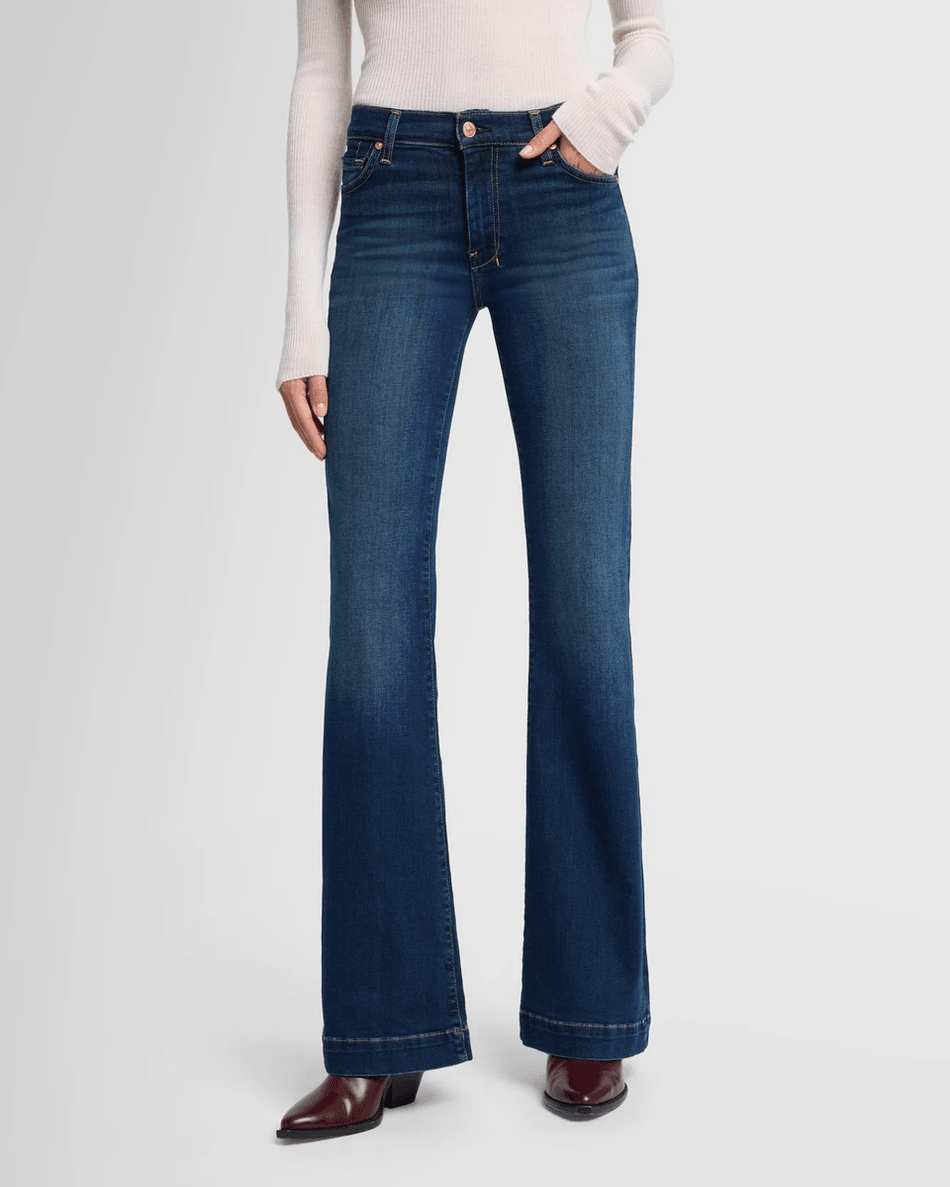 The 7 For All Mankind B(air) Authentic Denim Dojo in Fate is designed for the modern woman who values both style and comfort. The fitted design through the hips and thighs offers a flattering fit, while the gentle flare at the hem enhances your natural shape. This timeless piece is perfect for transitioning from day to night, making it a staple in your denim collection.