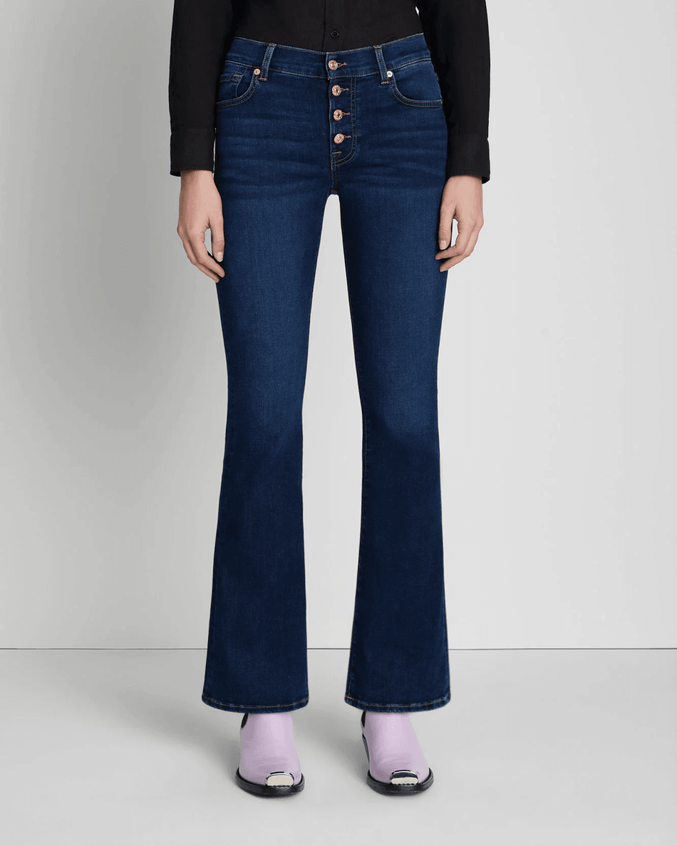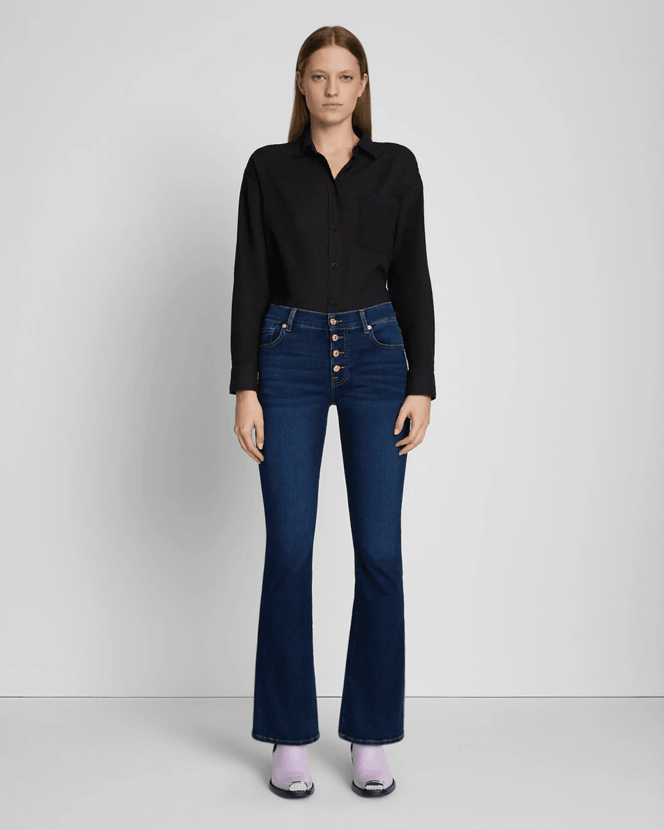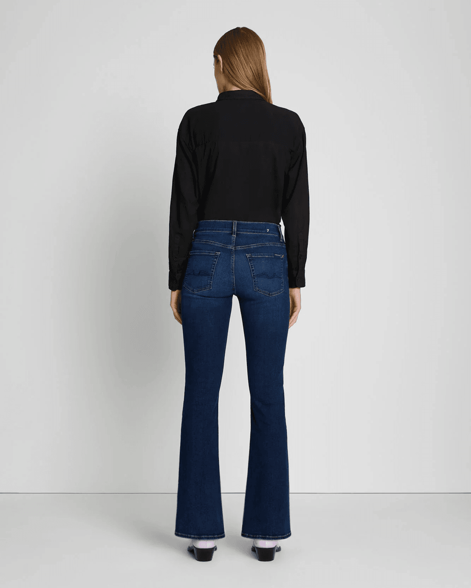 Step into effortless style with the 7 For All Mankind B(air) Bootcut Tailorless in Rinsed Indigo. This iconic bootcut jean combines comfort and sophistication, perfect for the modern wardrobe. Designed without a tailor, it offers a shorter inseam while maintaining the signature fit you love.