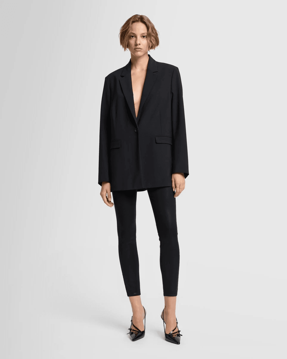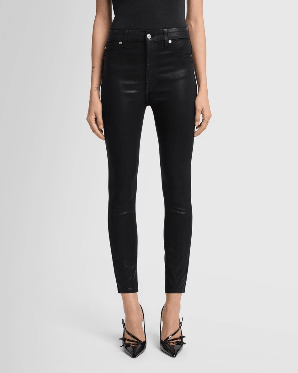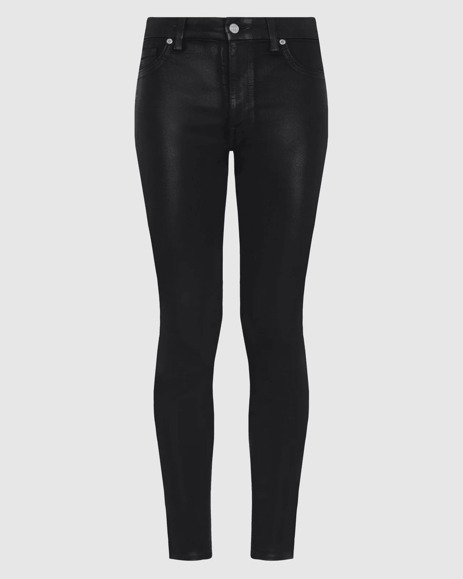 Elevate your style with the 7 For All Mankind B(air) High Waist Ankle Skinny in Coated Black. This must-have skinny jean combines a sleek, high-sheen finish that resembles luxurious leather, making it the perfect choice for both casual outings and sophisticated events.
