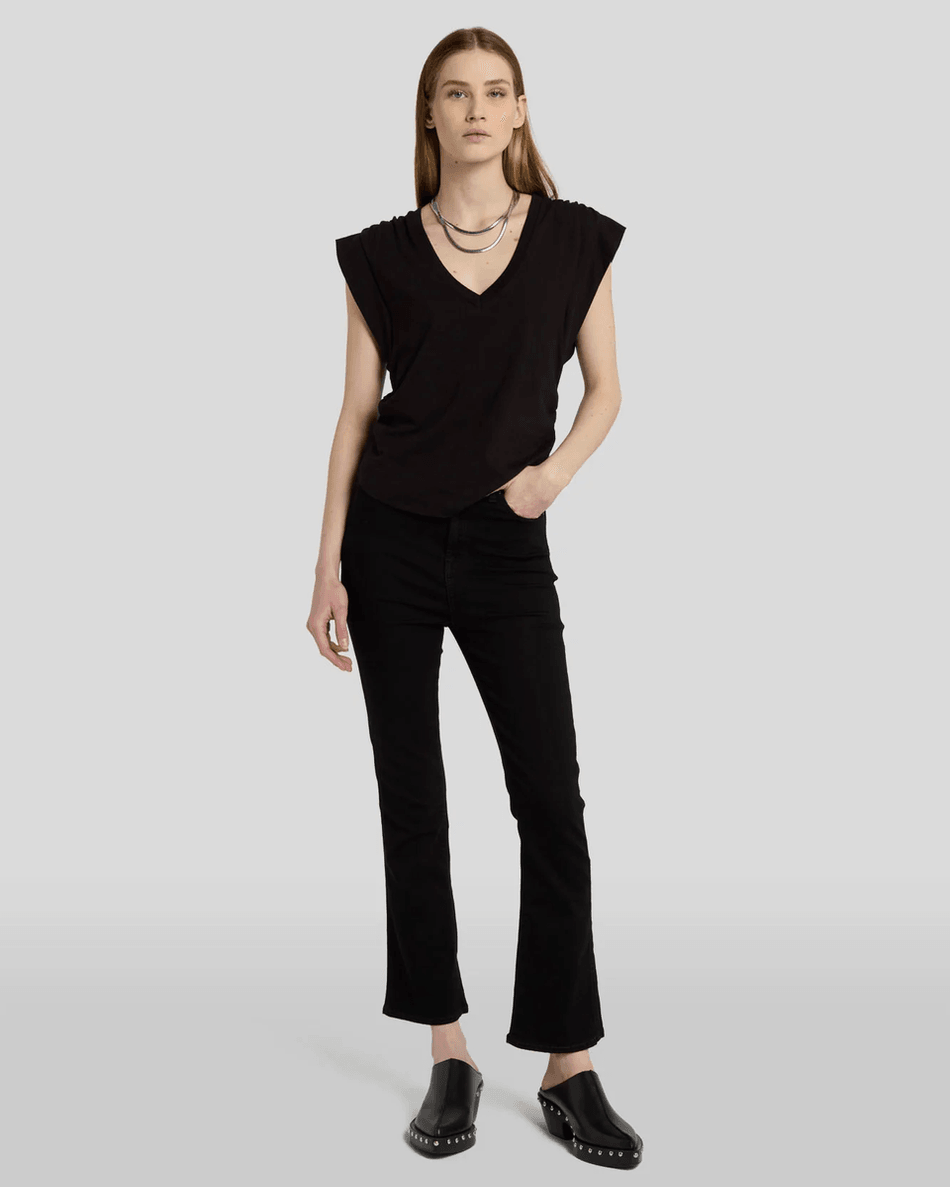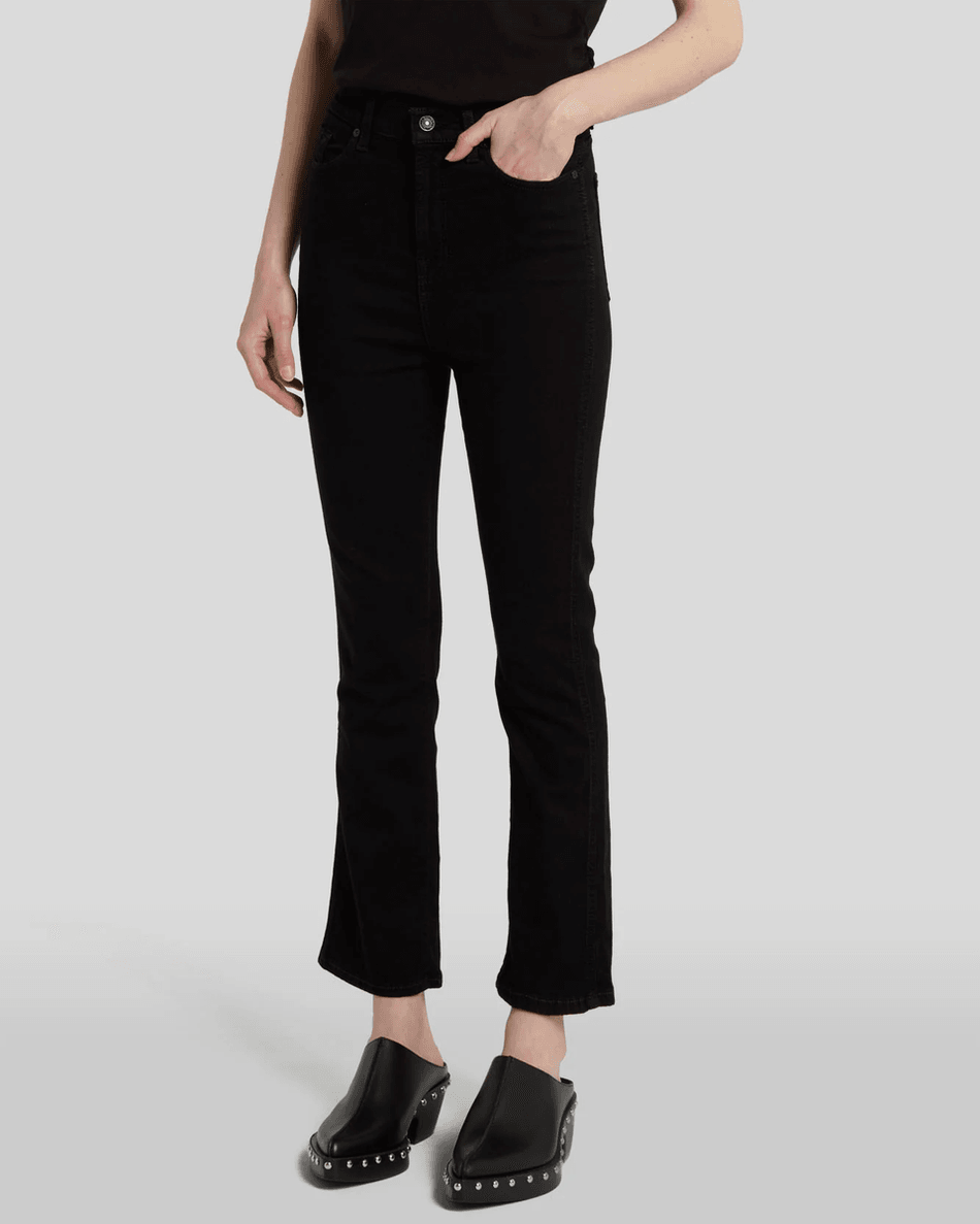 Elevate your denim collection with the 7 For All Mankind B(air) High Waist Slim Kick in Rinsed Black. This stylish jean combines comfort and elegance, designed to enhance your silhouette effortlessly. With its chic cropped kick flare, this high-rise jean is perfect for any occasion.